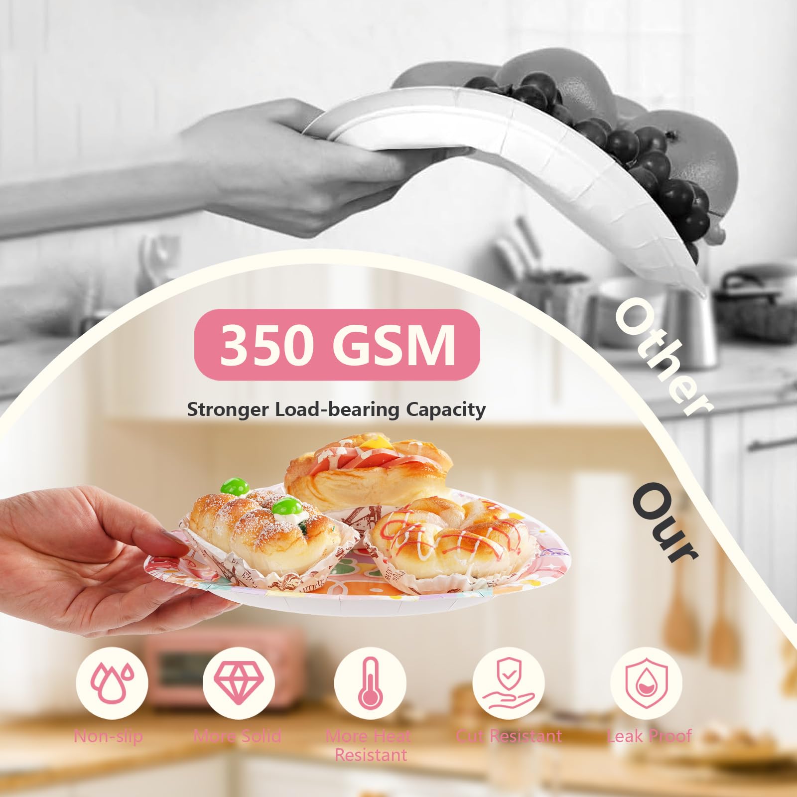 【Upgraded Material】Our boho hippie party plates is made of high quality thick paper, upgraded 350g weight is more sturdy and not easy to bend. The napkin is 2-ply, soft and absorbent, not easy to tear. The fork is made of high quality plastic, not easy to break. Retro bohemian pattern is beautifully printed and not easy to fade. High-quality materials ensure you enjoy the party smoothly and worry-free! (Tip: Please do not microwave the plates.)