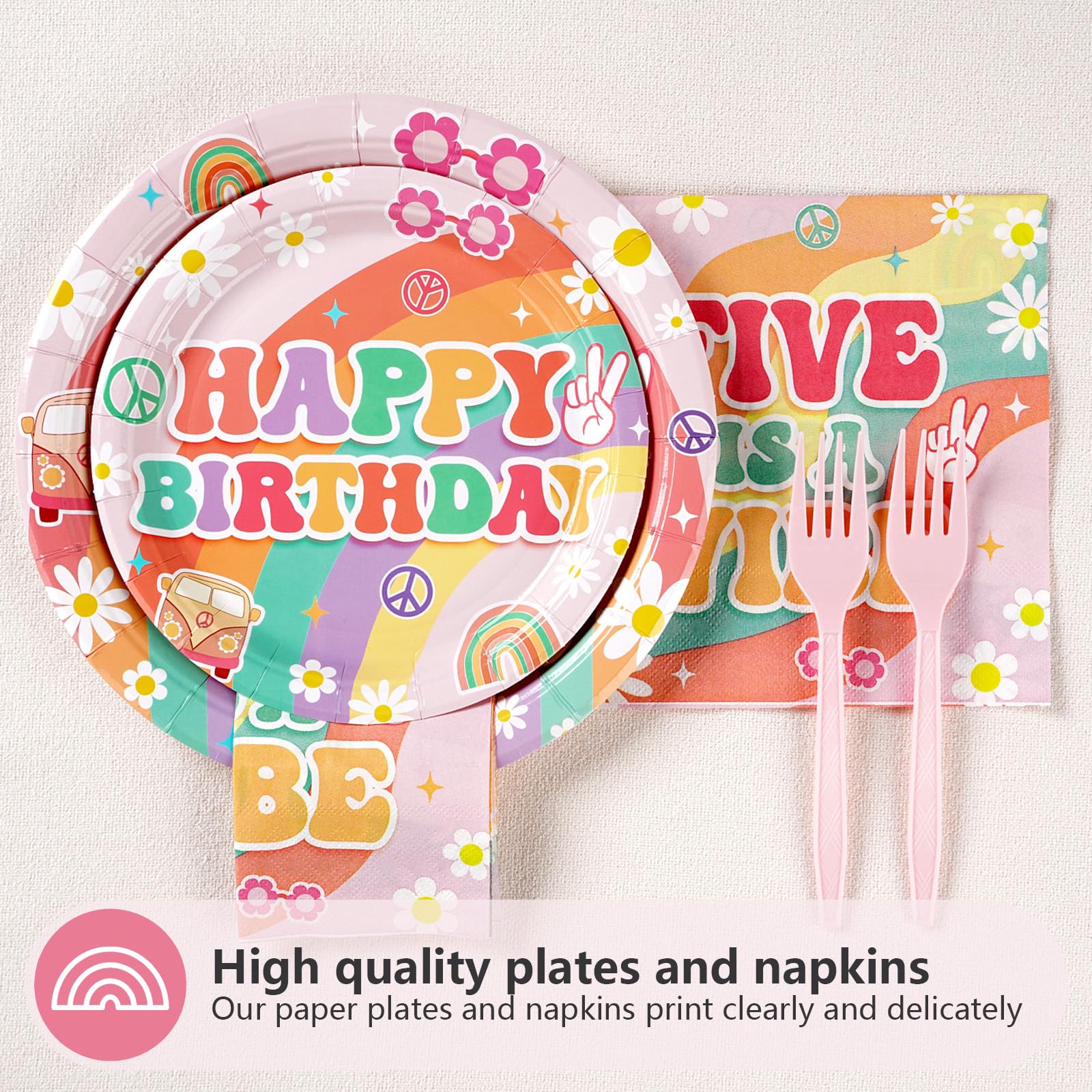 【Applicable Occasions】Our police party supplies decorations tableware set is perfect for groovy-themed party,five-year-old birthday parties,hippie-theme party,girls 5th birthday party,groovy 5th birthday party,boho 5th birthday party and others retro bohemian themed party.Our Five is a vibe birthday party decorations can add a formal and lively atmosphere to various girls 5th birthday related activities, making the celebration more unforgettable and meaningful.