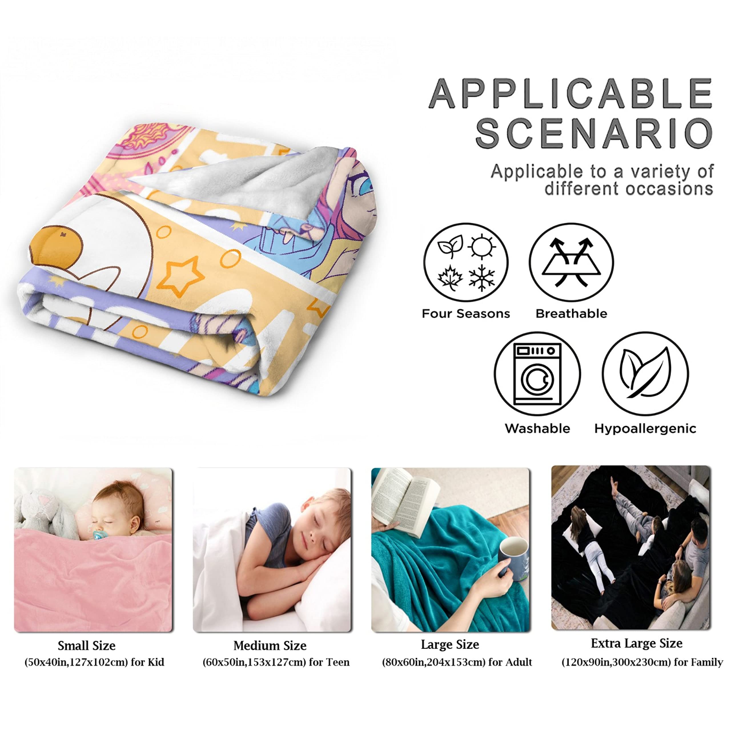 BLANKET SIZE -The Blanket Can Not Only Be A Practical Product, But Also Printed With Unique Patterns Or Interesting Words. 50x40in Is Suitable For Kids; 60x50in Is Suitable For Girls, Boys And Backpacking; 80x60in Is Suitable For Women Men;120x90in For Whole Family To Watch TV Togeth