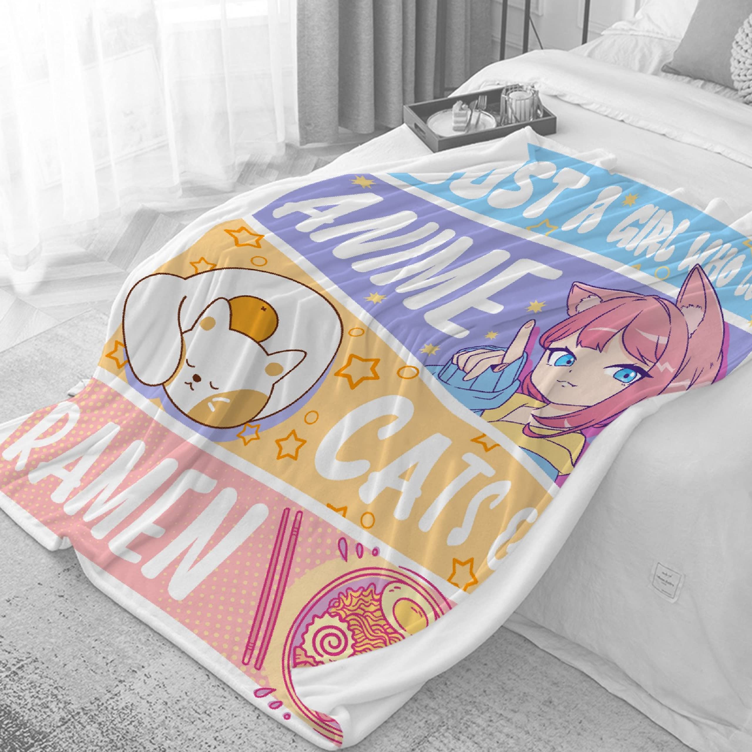 LIGHTWEIGHT FLUFFY FABRIC - These Just A Girl Who Loves Anime Cats And Ramen Blanket Are Made Of 100% Polyester Microfiber Fabric.Suitable For Spring/summer/autumn/winter.No Shedding And Fading.Good Choice For Gifts From Family And Friends.