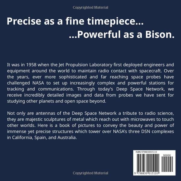It was in 1958 when the Jet Propulsion Laboratory first deployed engineers and equipment around the world to maintain radio contact with spacecraft. Over the years, ever more sophisticated and far reaching space probes have challenged NASA to set up increasingly complex and powerful stations for tracking and communications. Through today's Deep Space Network, we receive incredibly detailed images and data from probes we have sent for studying other planets and open space beyond. Not only are antennas of the Deep Space Network a tribute to radio science, they are majestic sculptures of metal which reach out with microwaves to touch other worlds. Here is a book of pictures to convey the beauty and power of immense yet precise structures which tower over NASA's three DSN complexes in California, Spain, and Australia.