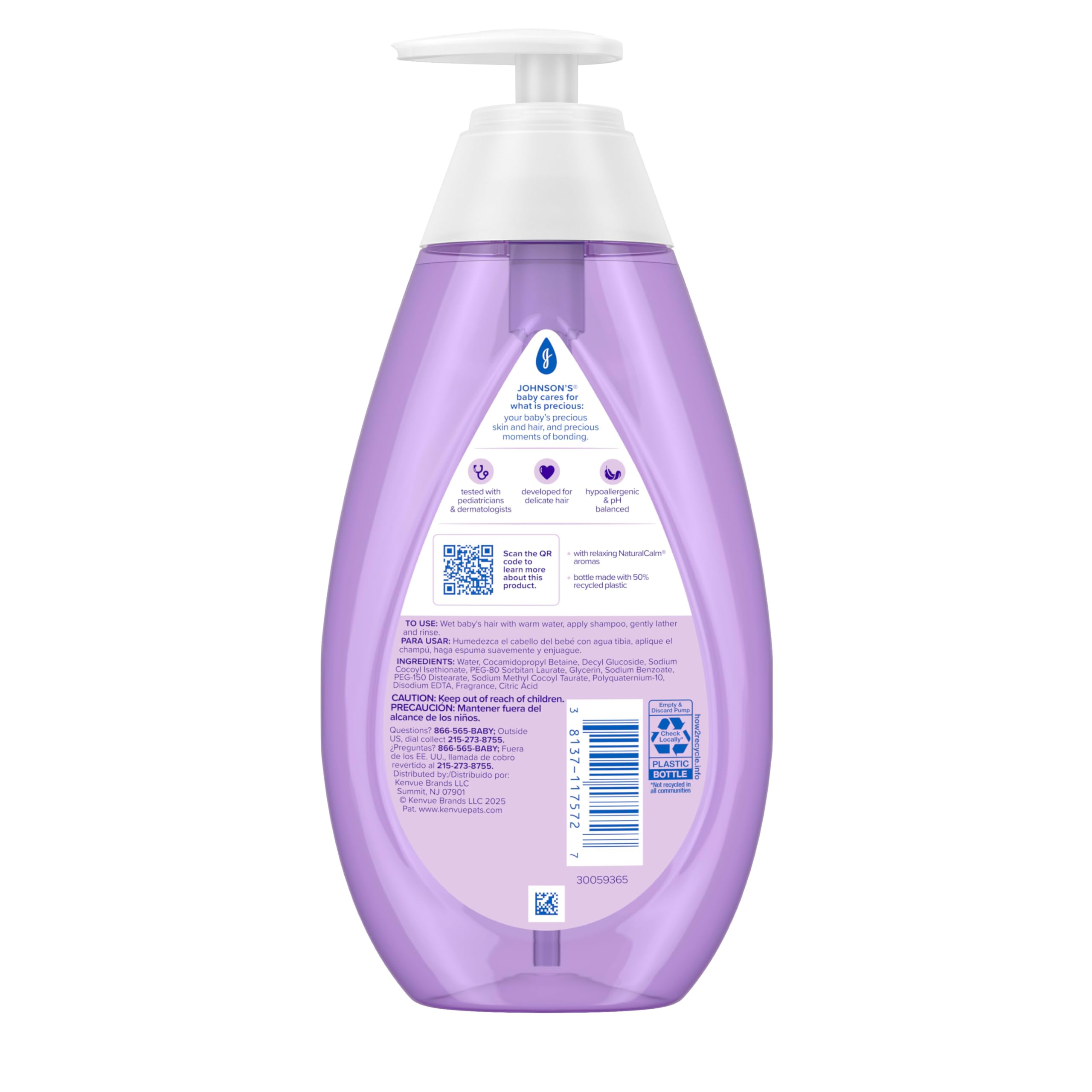 Gently cleanse and help relax your little one before bed with Johnson’s Baby Calming Shampoo. Made for babies and toddlers, but also can be enjoyed by adults, this No More Tears baby shampoo features a soothing, powdery floral scent from NaturalCalm aromas to help calm baby before bed. Specially developed for delicate hair and scalp, the No More Tears formula is as gentle to the eyes as pure water. This pediatrician and dermatologist tested Johnson’s Baby shampoo is a pH balanced and hypoallergenic shampoo and has no added parabens, sulfates, and dyes. Whether for baby, kids, or even adults, this calming shampoo leaves hair feeling soft, clean, and healthy. Johnson’s Baby cares for what’s precious: your baby’s precious skin and hair, and precious moments of bonding. Packaged in a bottle made with 50% recycled plastic. Our Formula: Relaxing NaturalCalm® aromas to help relax baby before bedtime. No added parabens, sulfates, or dyes. Pediatrician & Dermatologist Tested. How to Use: To use this calming baby shampoo, wet hair with warm water, apply No More Tears shampoo, gently lather, & rinse. Our Formula: Relaxing NaturalCalm aromas to help relax baby before bedtime. No added parabens, sulfates, or dyes. Pediatrician & Dermatologist Tested. Brand Story: Johnson’s Baby cares for what’s precious: your baby’s precious skin and hair, and precious moments of bonding. For over 125 years, we’ve been committed to crafting gentle, science-backed baby care products that support happy, healthy bonding moments. World's #1 Baby & Child Care Brand* *Source Euromonitor International Limited; Beauty and Personal Care 2025 ed. As per Baby and Child-Specific Products Category; all retail channels; value sales at RSP; 2024 data.