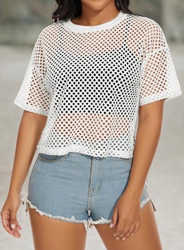 Material:The women fishnet top is made of breathable, lightweight soft fabric. And short sleeve mesh net cover up is for summer, keeping you cool and comfortable.