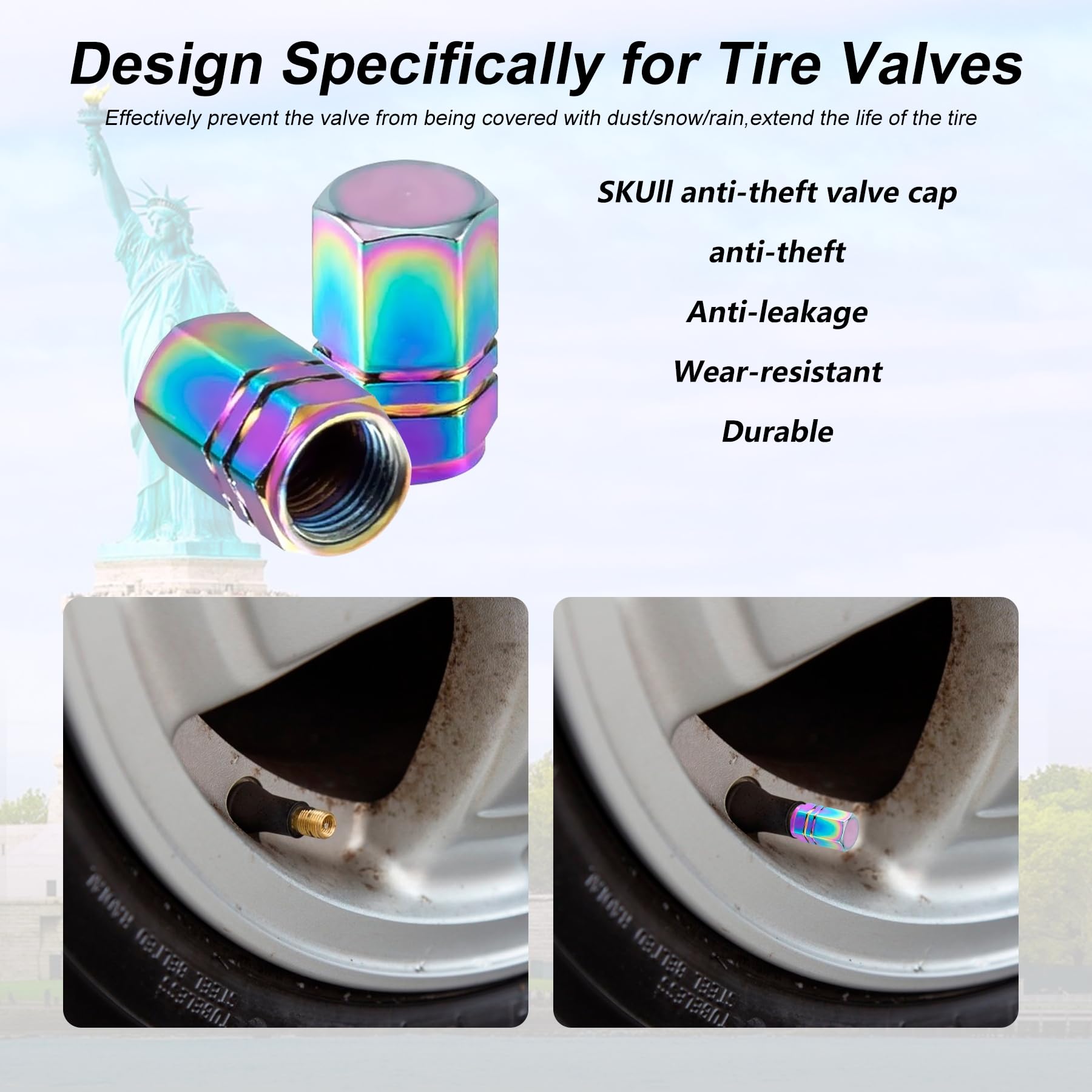 【High-quality Material】:The valve cap is made of high quality aluminum alloy, which can effectively protect the tire from damage after long-term use.