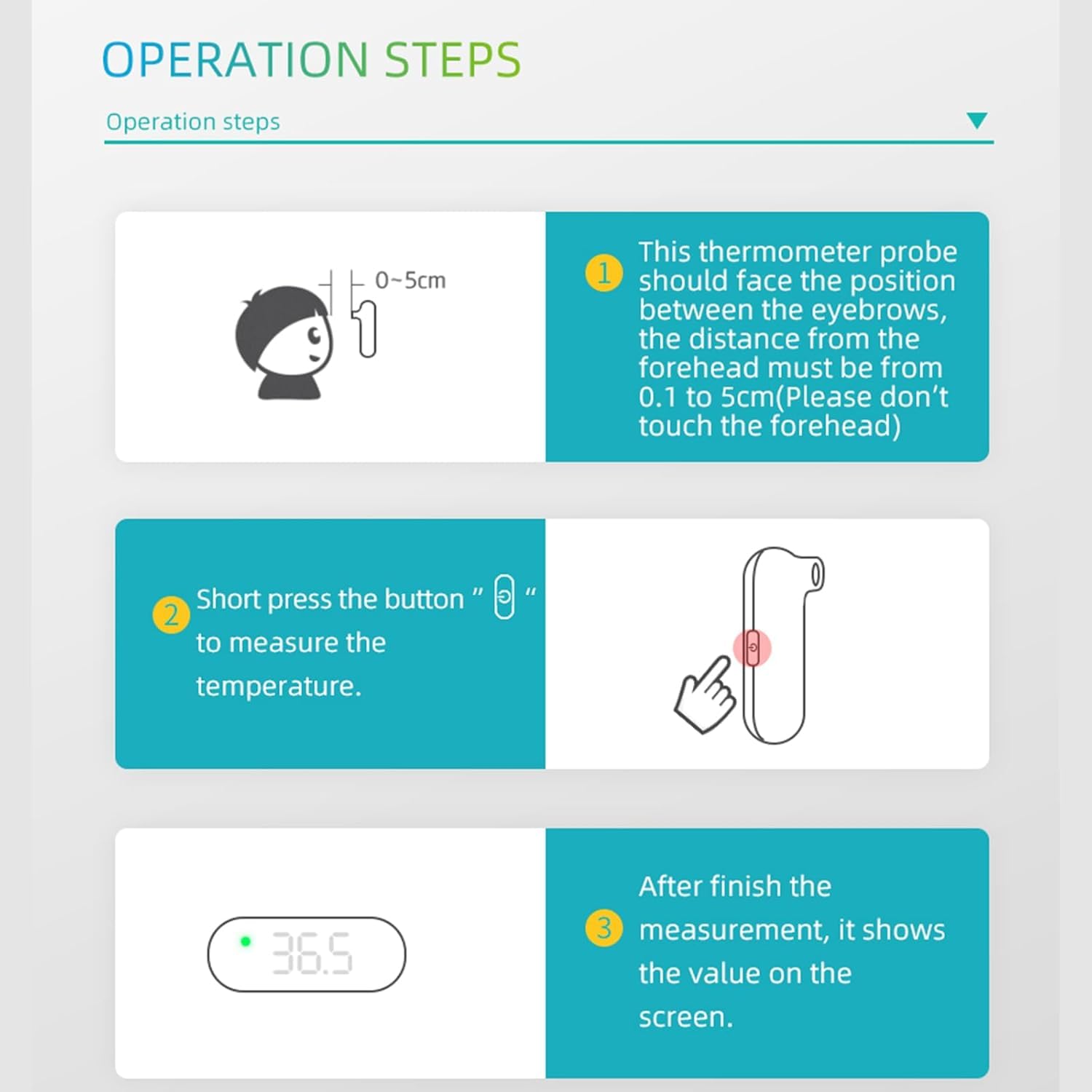 Effortless Unit Conversion & Auto Shut-Off: Easily switch between โ and โ by holding the button for 3 seconds. Designed for convenience, the forehead thermometer also features an energy-saving auto power-off function to extend battery usage.