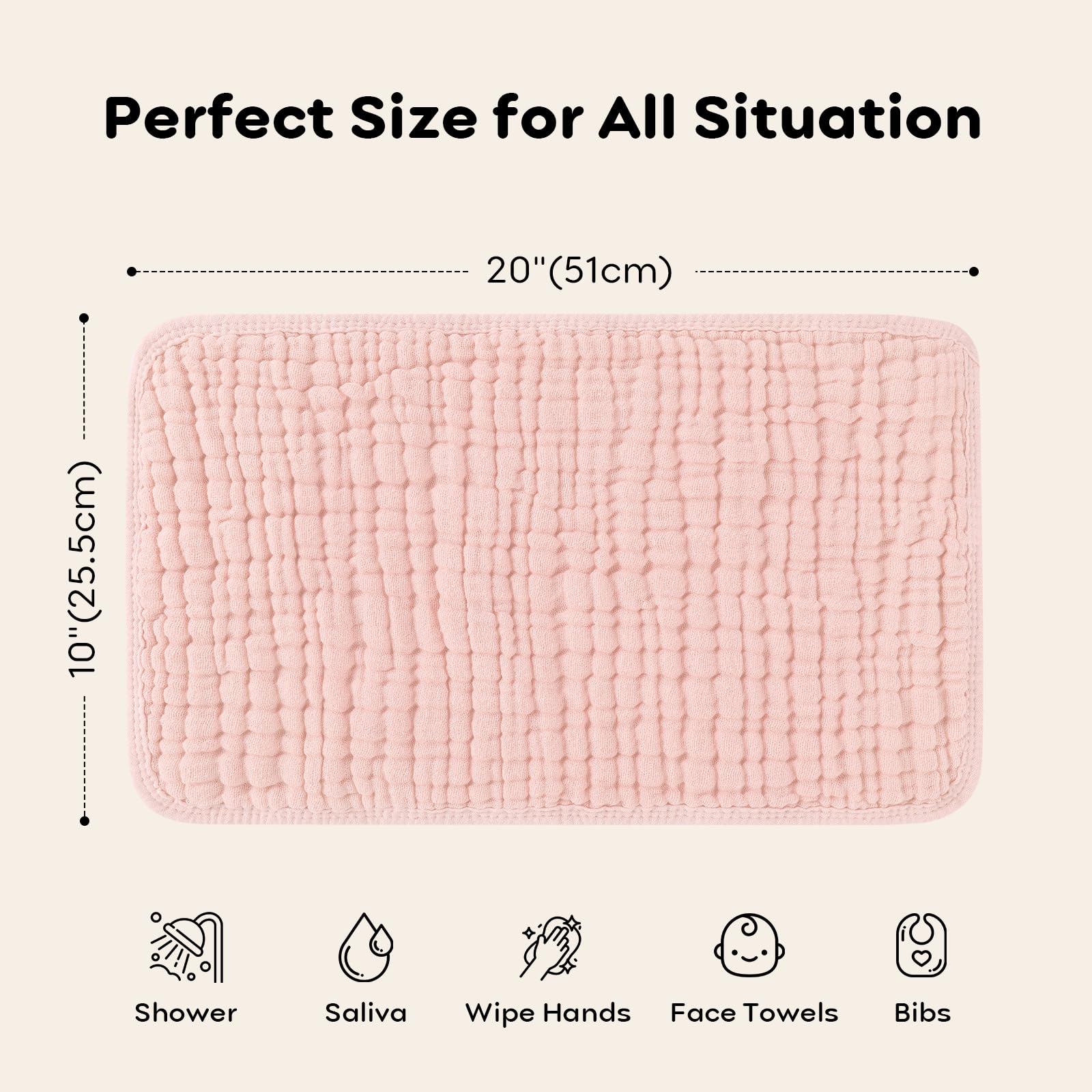 MULTI-FUNCTION - 20x10 inches, our muslin washcloths will be your favorite daily essentials as reusable baby wipes, burp cloths, baby face towels, cloth diapers, body washcloths, adult face towels and anything else that's available. Perfect 6pcs meet your baby's different need.