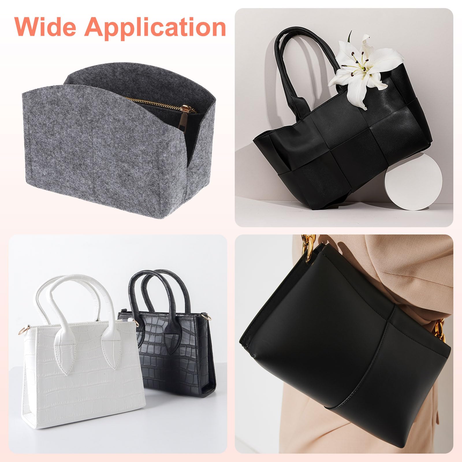 Wide Application: This felt bag liner makes your bag upright and protects the inside of the bag. Good for Handbags, tote bags, shoulder bags, purses and cosmetic bags.