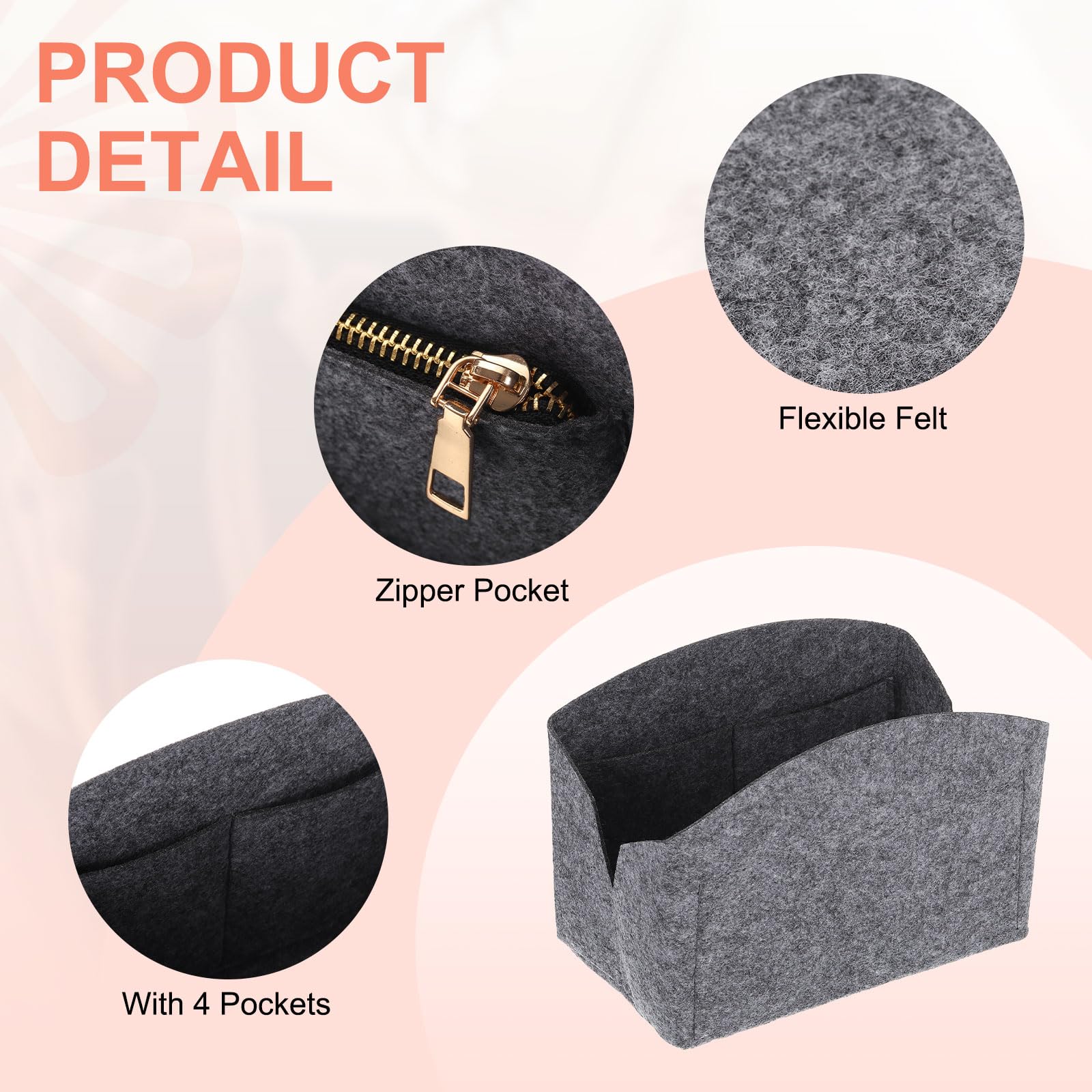 Felt Material: The purse insert is crafted from encrypted felt material which is durability and quality. Encrypted felt offers a soft and protective lining for the handbag, safeguarding items from scratches and impact during daily use.