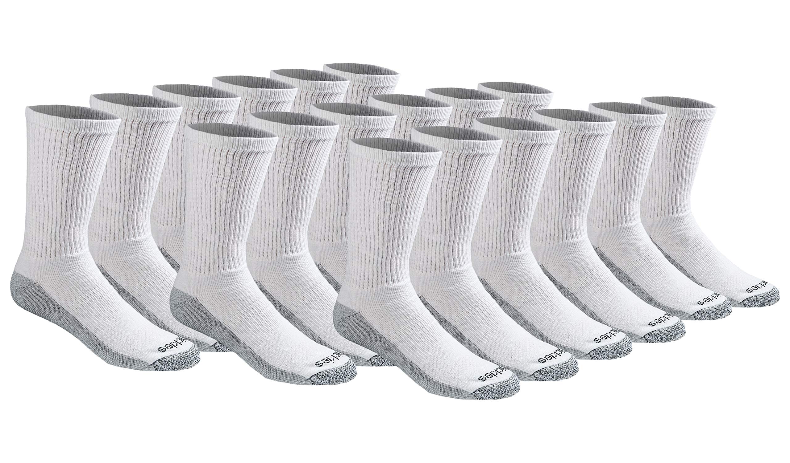 Description Dickies Dri-Tech comfort crew with wicking, moisture management fibers keeps feet dry, ventilation channels engineered for air circulation and moisture control, arch compression hugs feet and keeps socks in place, while providing in-step support, Reciprocated heel and toe for superior fit and full cushion comfort