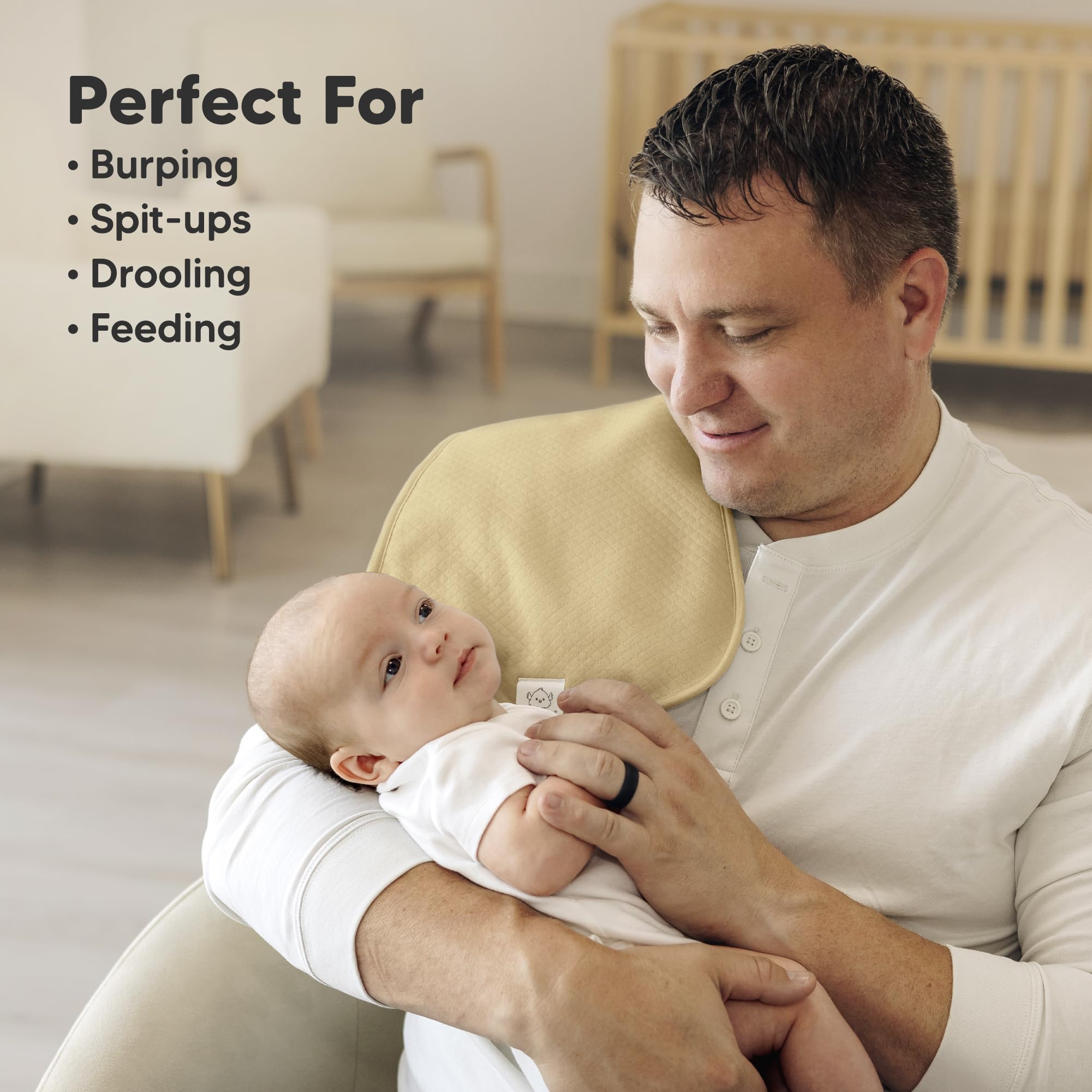 Ergonomic Comfort - Snuggle up with these versatile organic burping cloths for babies, featuring a smart figure-8 design that stays snug on your shoulders. Lightweight and broad-coverage, they effortlessly guard your clothes against sneaky spit-ups.