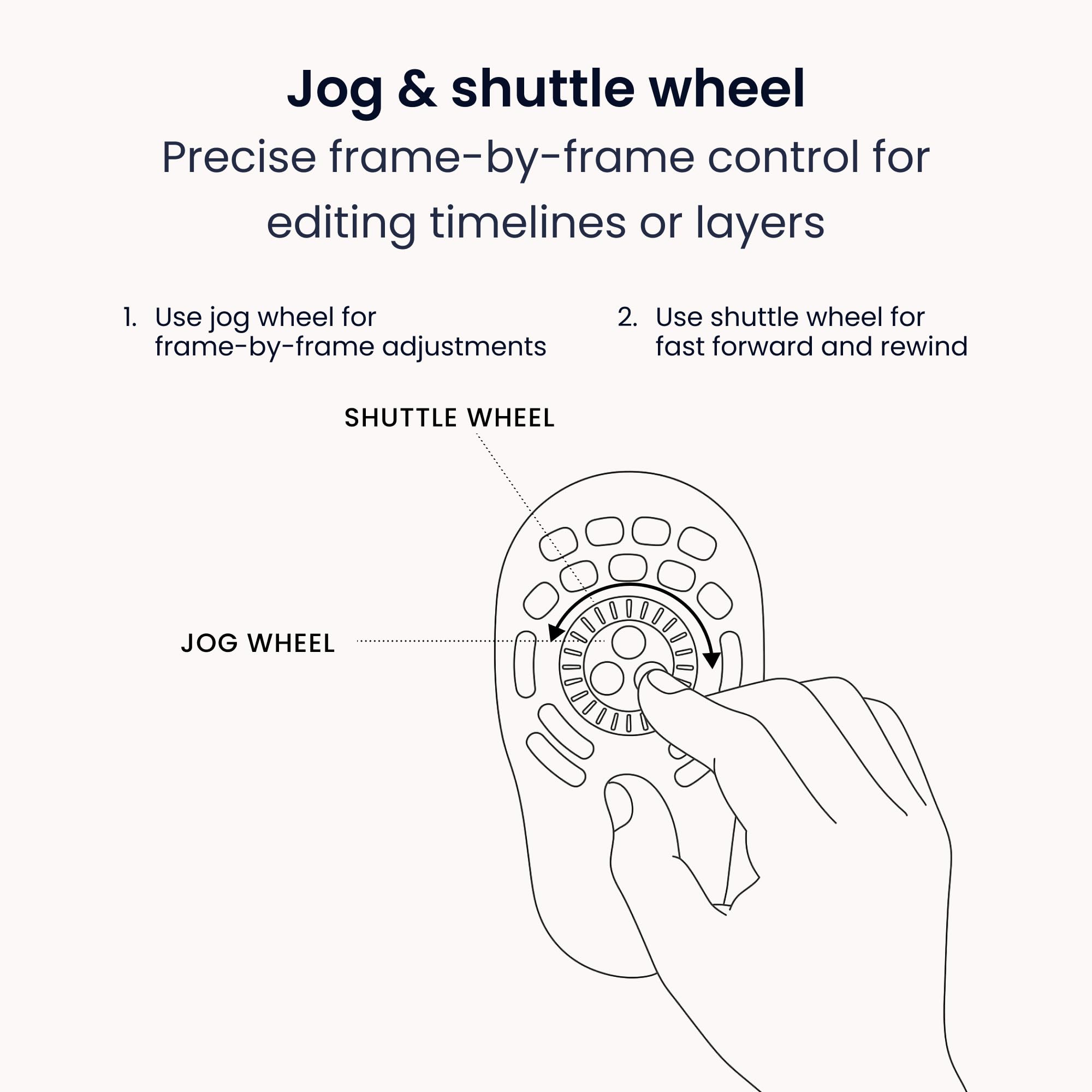 ✅ COMPACT DESIGN FOR EFFORTLESS USE: Fits comfortably in one hand with a minimal desk footprint. Designed to fit any workspace, allowing your fingers little to no movement to reach all buttons & the jog wheel, keeping your workflow smooth and efficient.