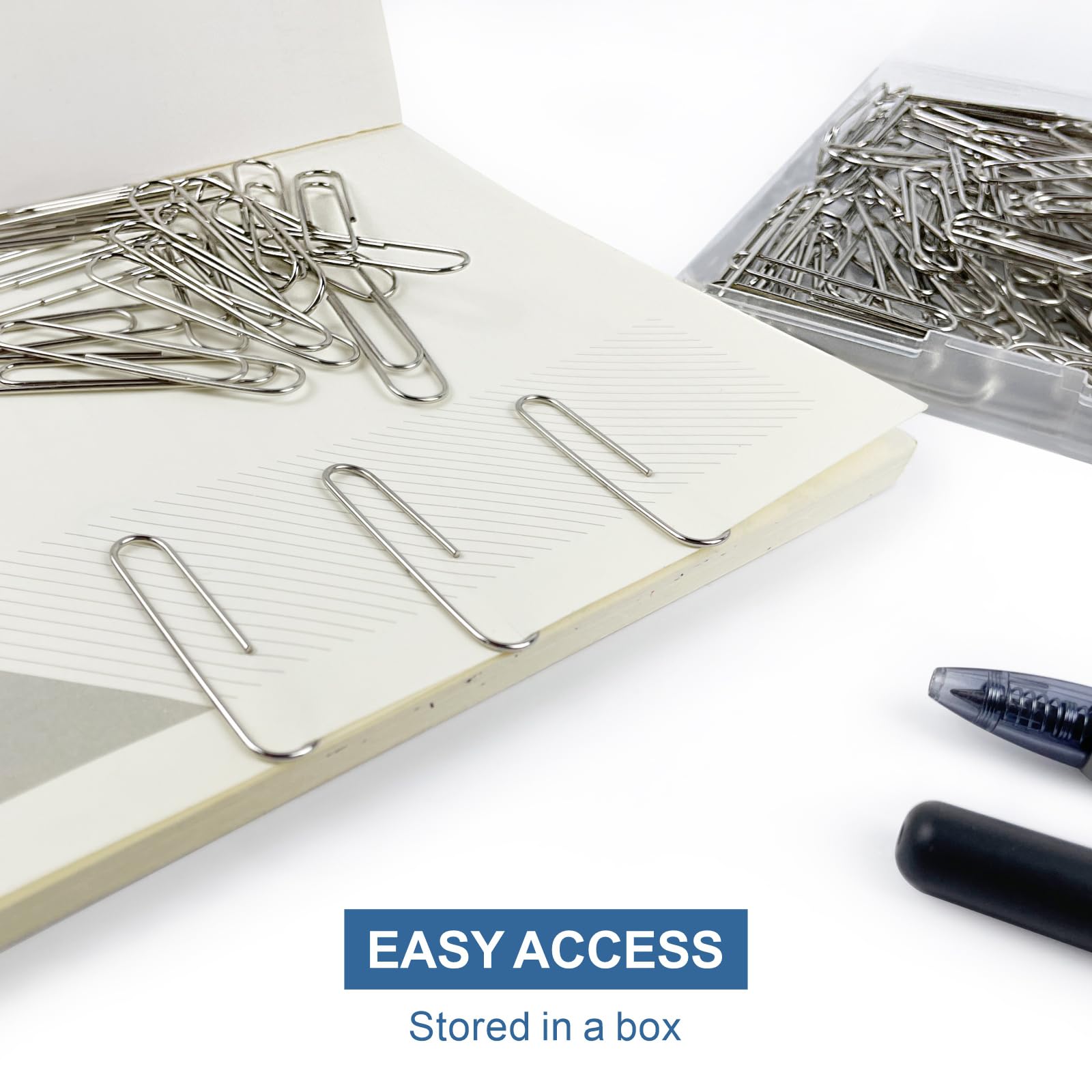 EASY ACCESS - 240pcs large silver paper clips are stored in a delicate plastic box for easy access.