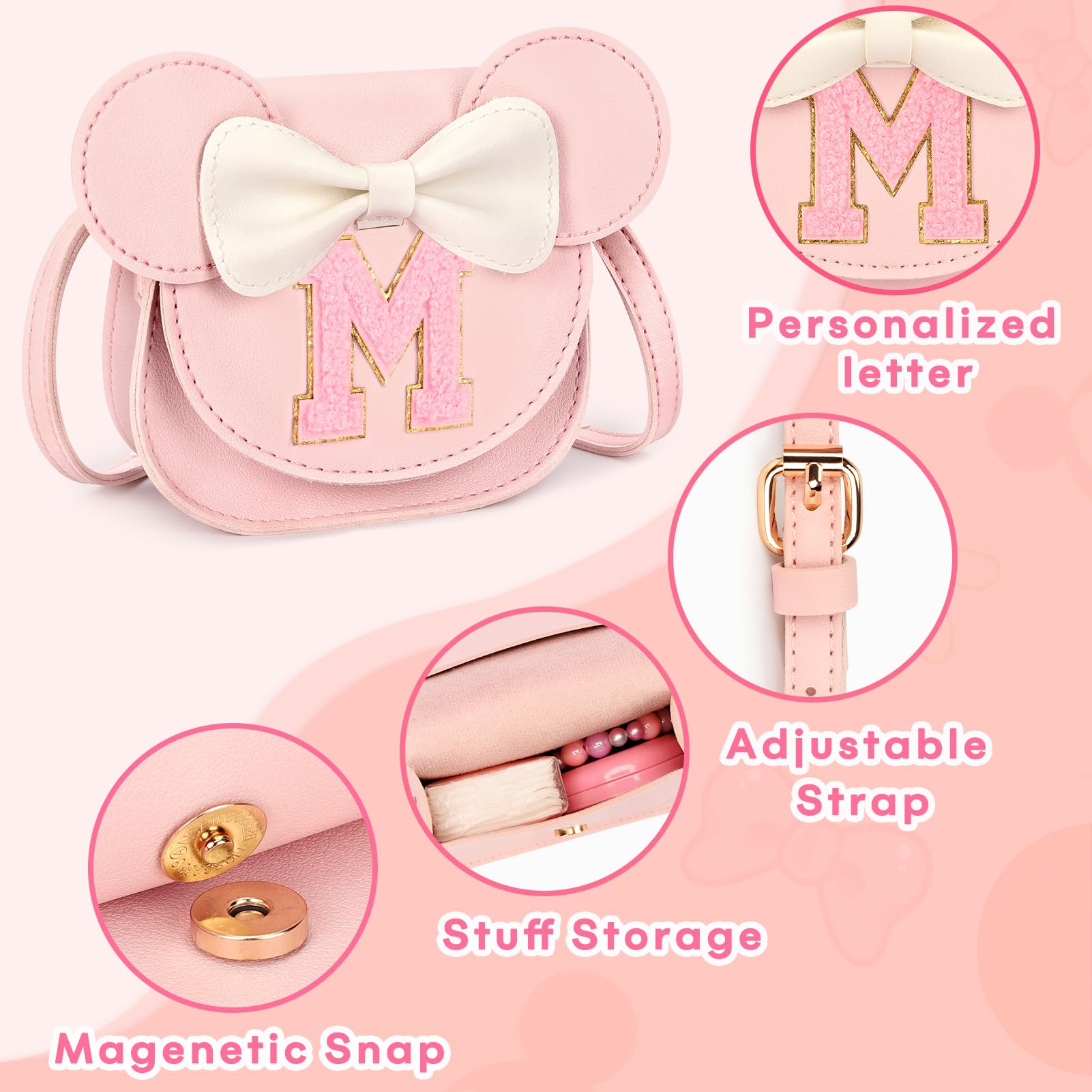 Cute Shape: Patched with a letter, this little girl purse would be a personalized one year old girl birthday gifts. Kids would love its mouse ears and bow