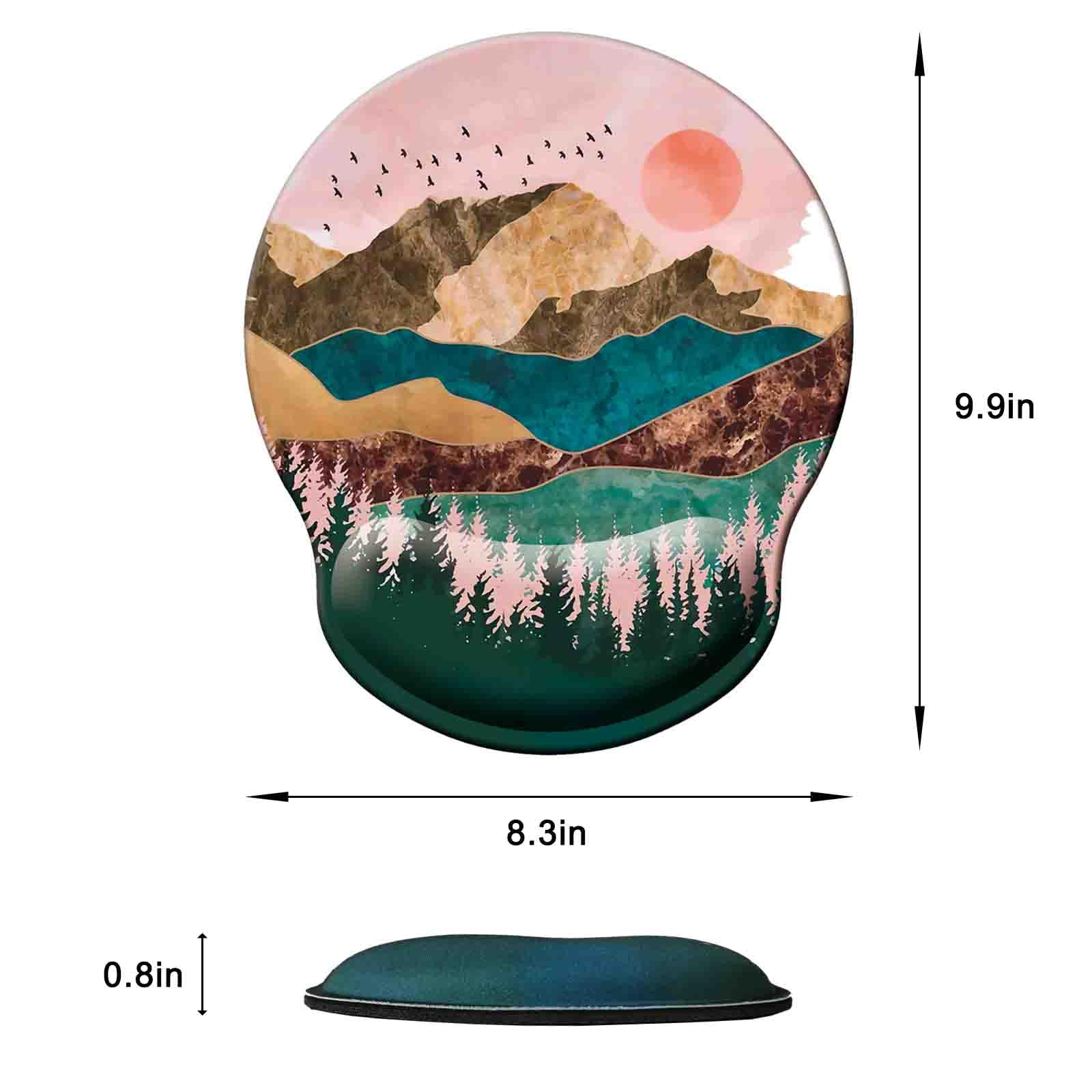ERGONOMIC - Approximately 9.9 in x 8.3 in, 0.8 in thick. The reinforced edges are not easy to deform and damage, no curl up on edges. Ergonomic soft wrist rest mouse pad provide good touch and comfortable support for your wrists. Keep arms, wrists, and hands from getting sore when using computer for long time.