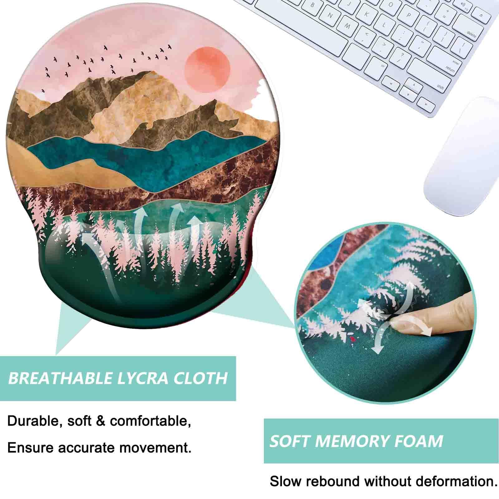 COMFORTABLE - Designed with curved shape wrist rest, filled in memory foam. The soft slow rebound memory foam cushions fit your hands in a natural posture. The smooth surface is made of breathable lycra cloth, ensure accurate precise movement, suitable for all types of mouse, vertical, corded, wireless, mechanical, optical etc.