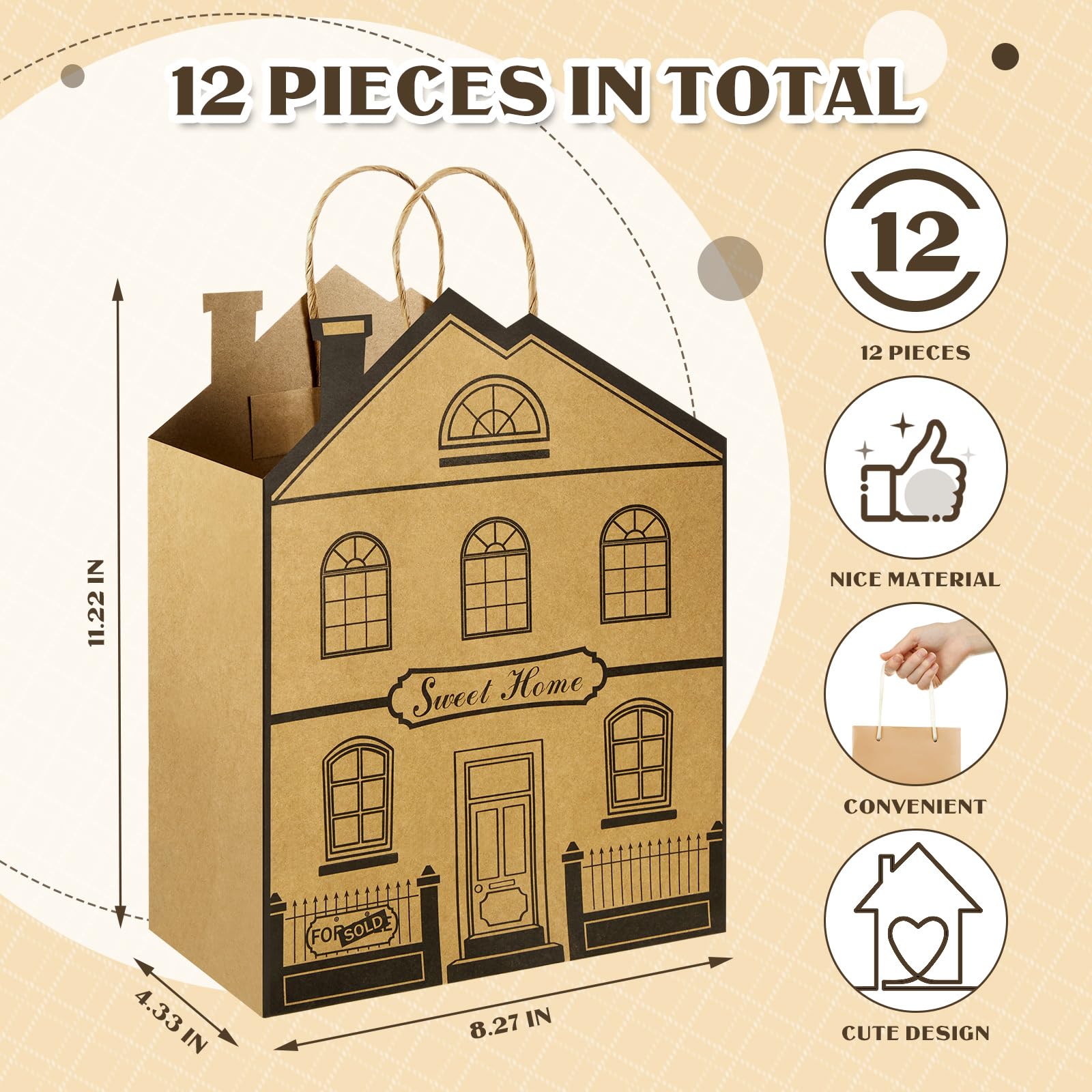 What You Will Get: you will receive a total of 12 pieces of house shaped gift bags in one package, enough quantity to cover your various needs; You can also give them as gifts to your friends and partners
