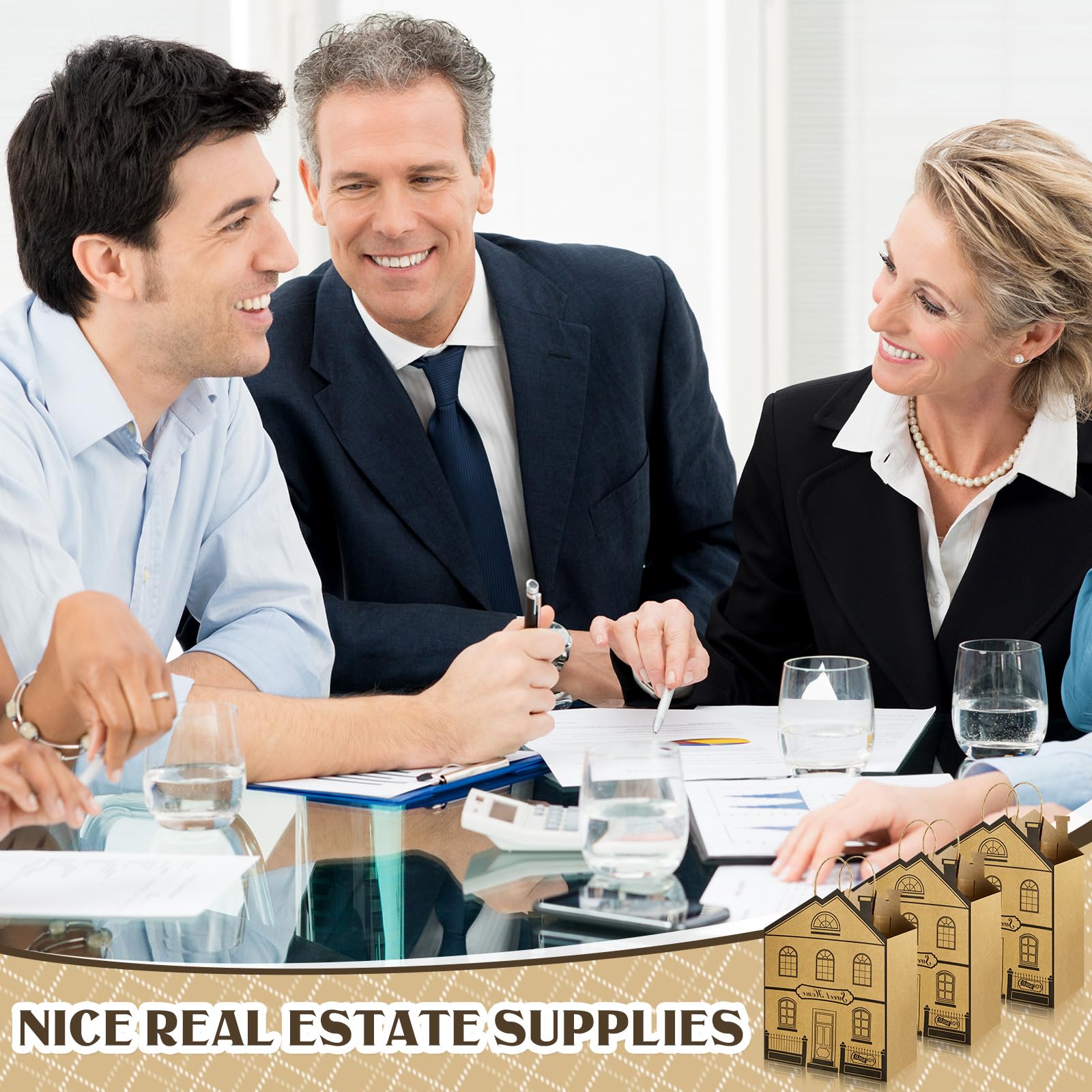 Quality Material: these real estate agent gifts bags are made of 240g kraft papers, lightweight but sturdy, safe and odorless, thick and not easy to break or tear, they also have a nice bearing capacity; These gift bags adopt trustworthy painting technology, so the patterns on bags are not easy to fade