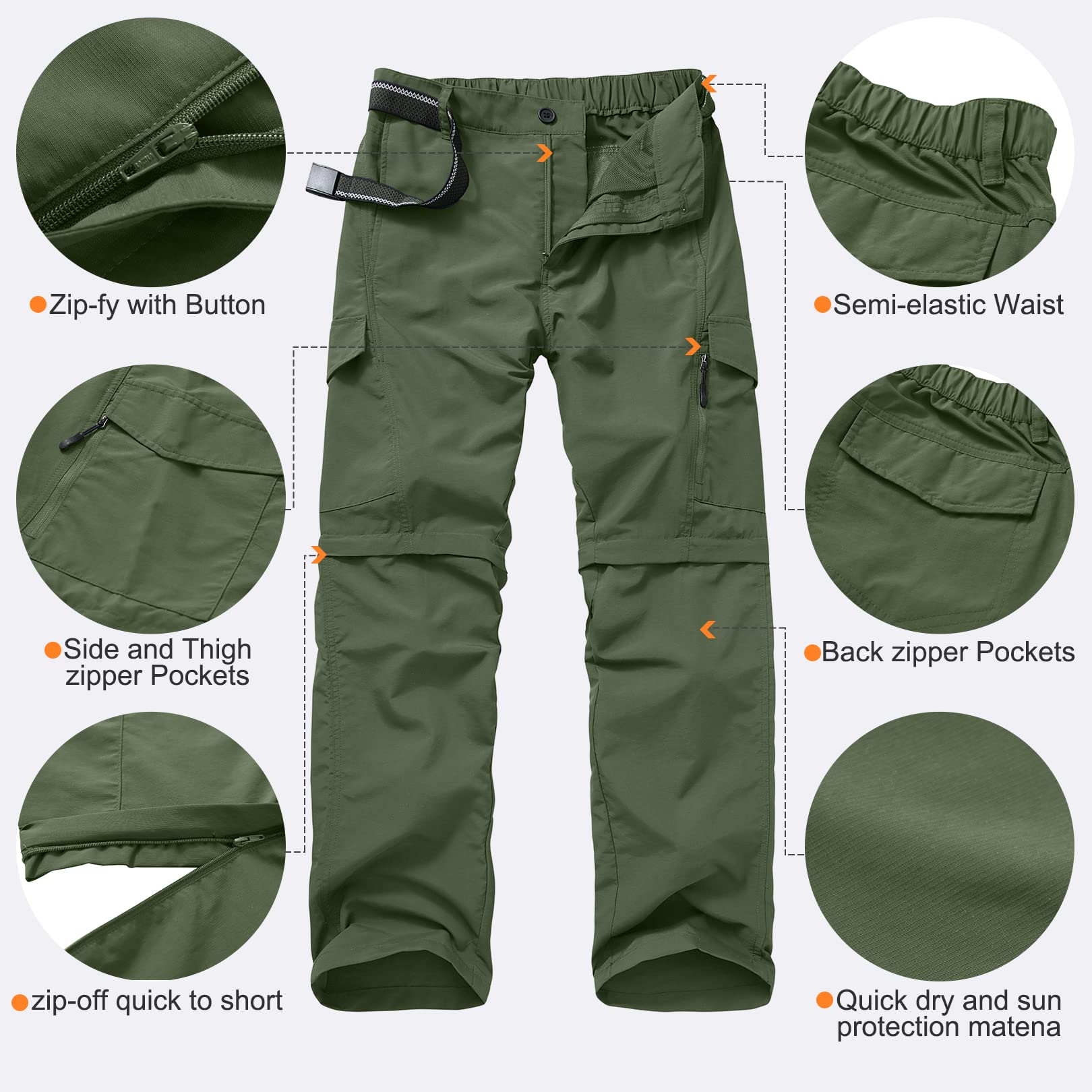 Convertible Pants Men: Elastic wear, water repellent, wear-resisting, quick dry. Zip-off legs pants make it easy to change from pants to shorts.