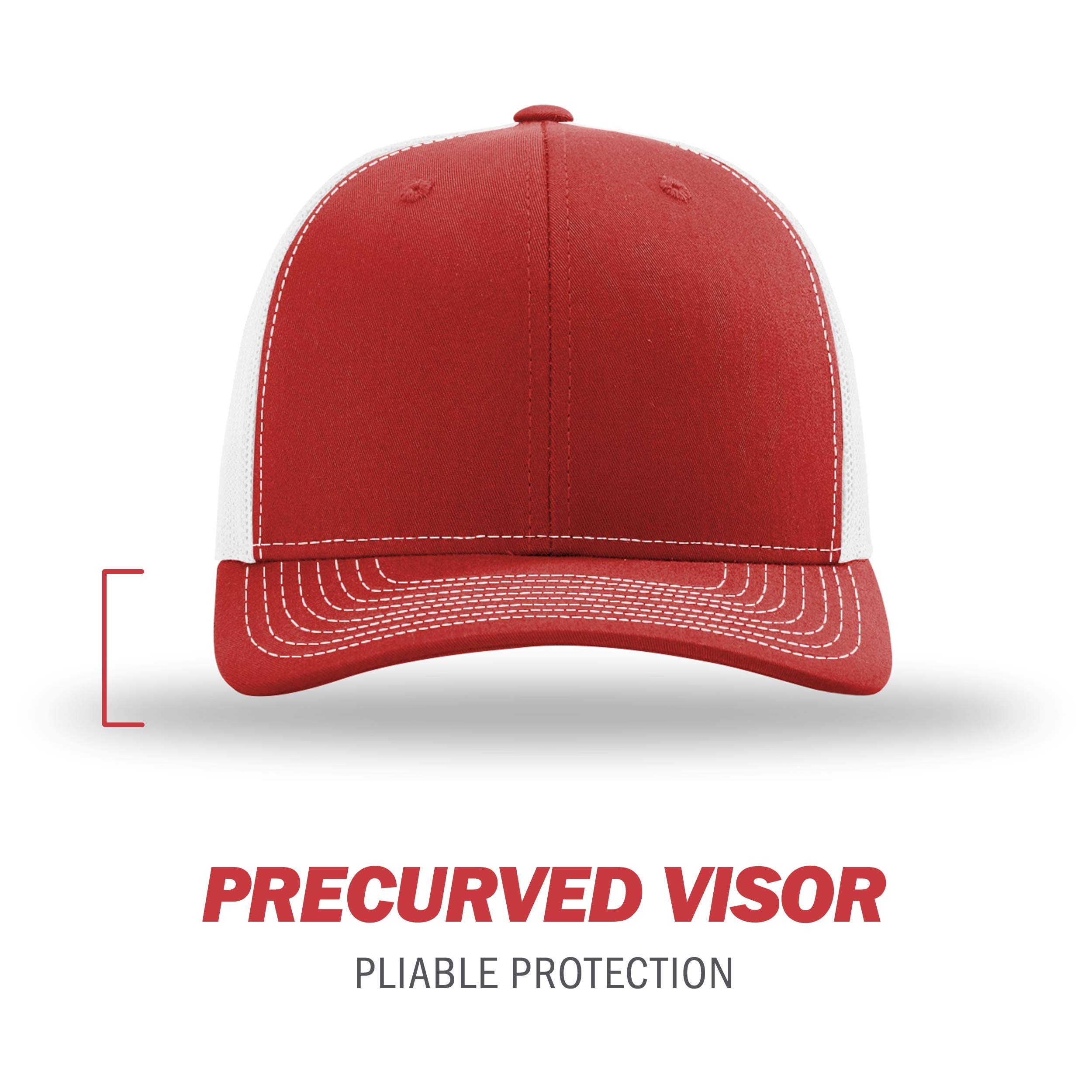 Description Richardson 112 mesh back adjustable truckers caps. Cotton polyester front panels and visor with nylon mesh back panels. Sport-casual shape, buckram fused front panels with pro stitching. Pre-curved pe visor. Adjustable plastic snap back strap.