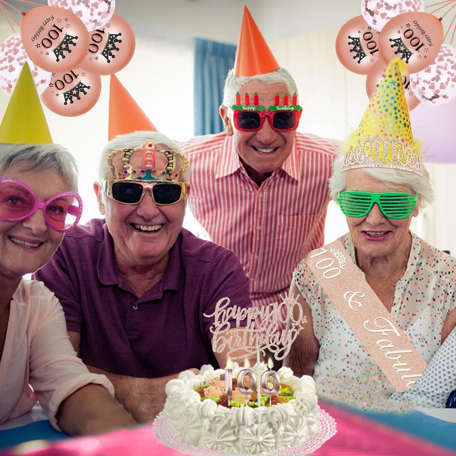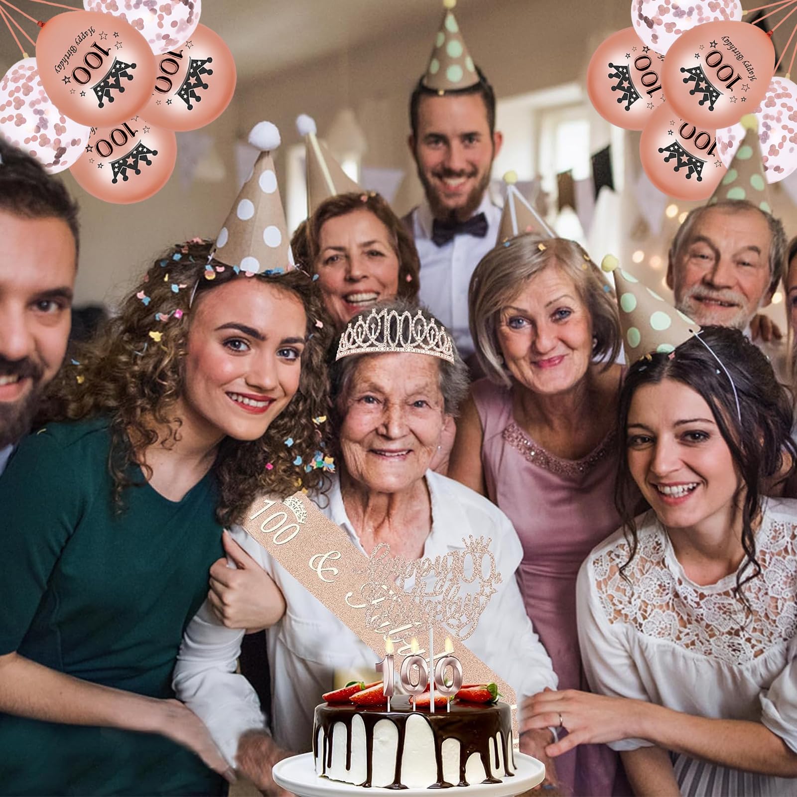 【100th Birthday Decorations】: Package coming with rose gold 100 birthday crown 1pc, 100 birthday sash 1pc, 100th birthday balloons 13pcs, happy 100th birthday cake topper 1pc, 100th birthday candles, This Birthday Gifts for women remind her and everyone in the 100th birthday party how fabulous she is.