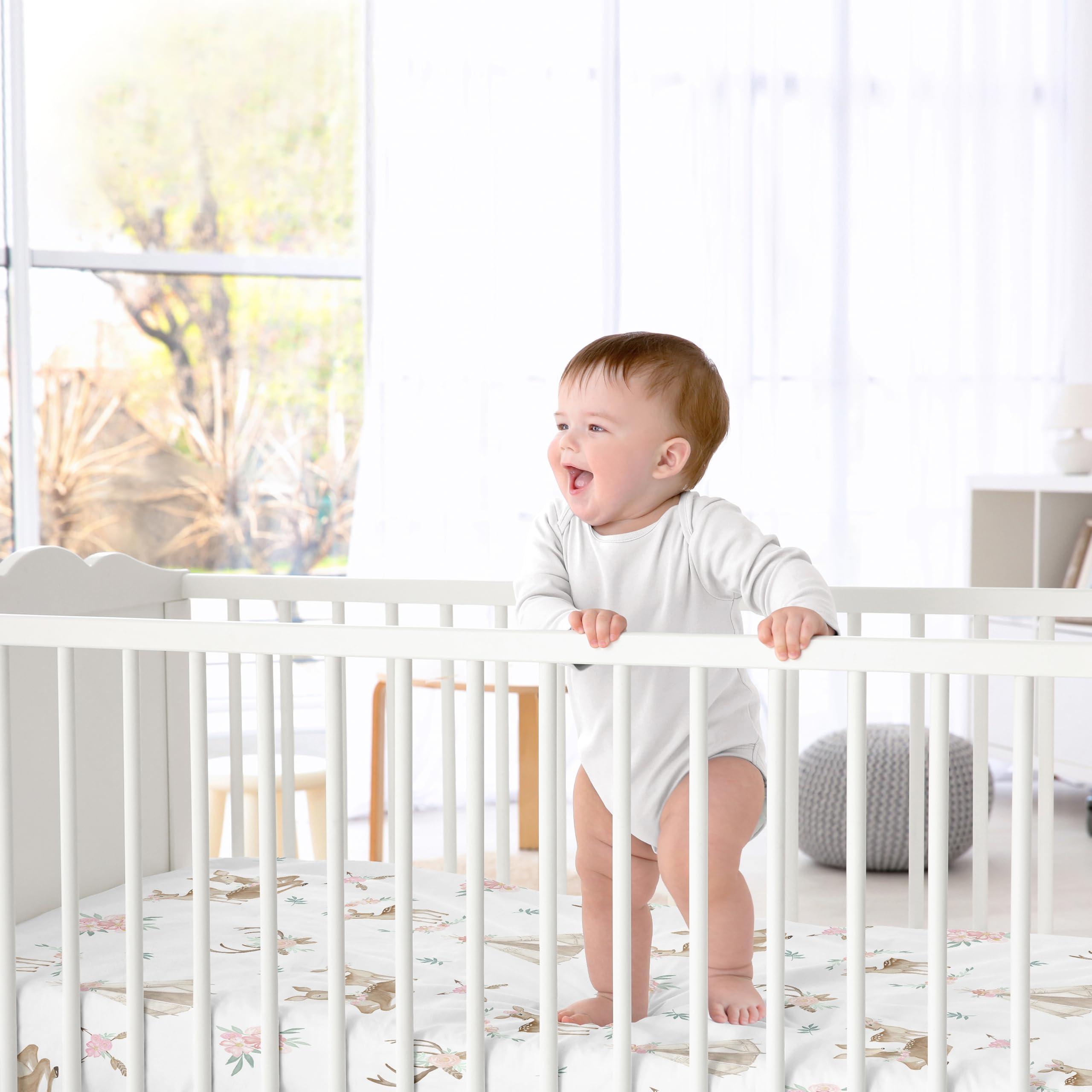 Fully elastic bottom that securely fits on most standard size cribs and toddler beds