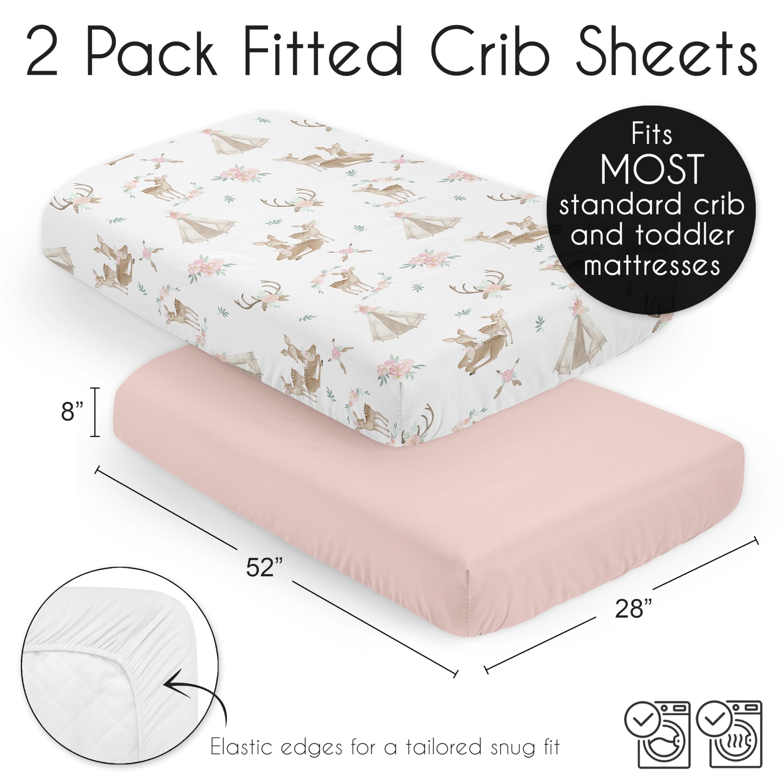 2 Pack Crib Sheet measures 52 in. x 28 in. x 8 in. each
