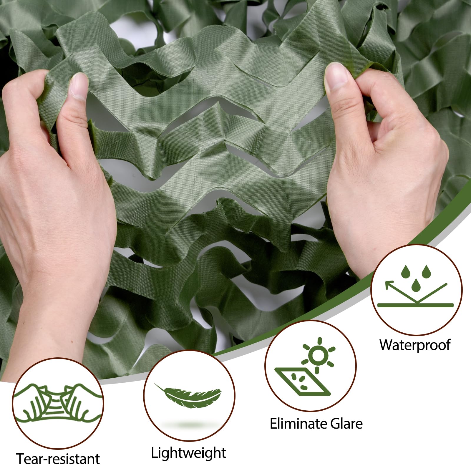 High-quality Material: Yeacool double-layer camouflage netting is made of 150D polyester oxford fabric with 3D leaf-like patterns, lightweight, tear-resistant and waterproof. Designed to be foldable, it’s easy to carry, store, and even fits into your camo backpack for hunting trips