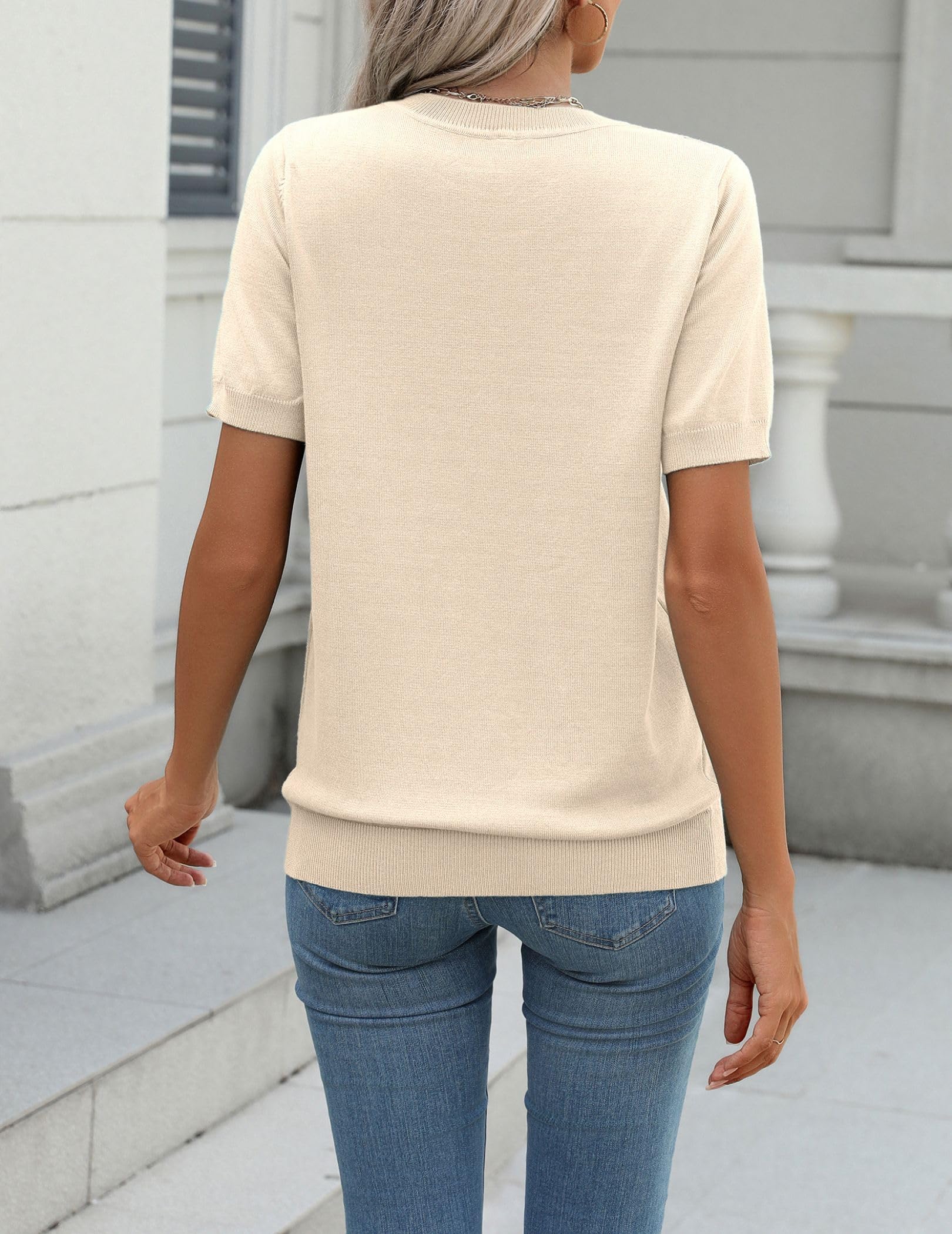 Sweater Tops Material:This short sleeve sweater is made of 100% Viscose.Women's tops is soft,lightweight,and breathable.super soft knit and perfect tailored fit brings you a wonderfully comfortable wearing experience.