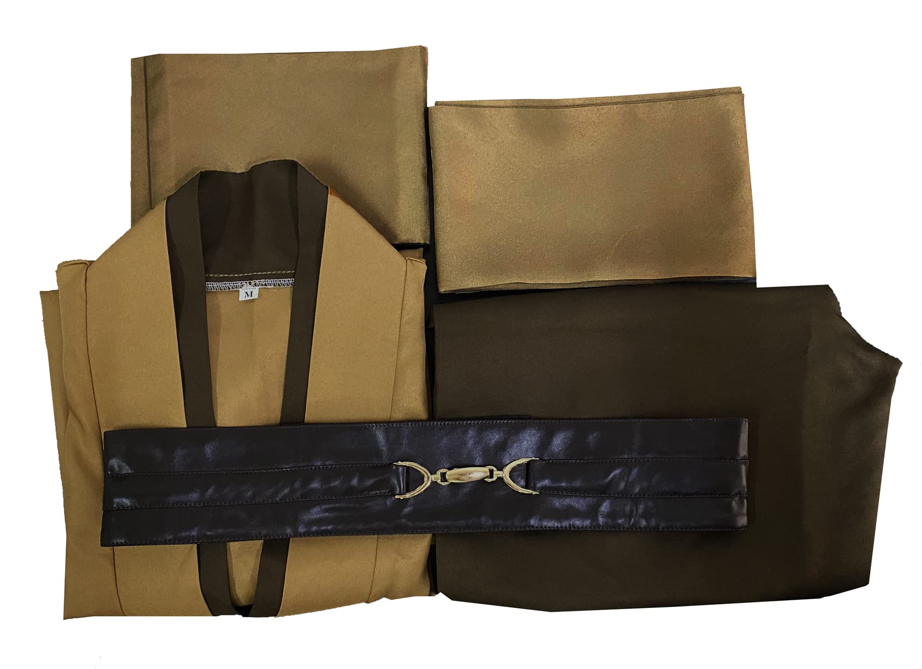 Size measurement for tunic: S: Tops Length 27.5" Bust 38.5" Pants waist 26.7-33" inseam 26.8" Belts Length 39.4"; M: Tops Length 27.9" Bust 42.5" Pants waist 29.5-34.6" inseam 28" Belts Length 41.3"; L: Tops Length 28.7" Bust 46.5" Pants waist 31.5-36.2" inseam 29.9" Belts Length 45.3";