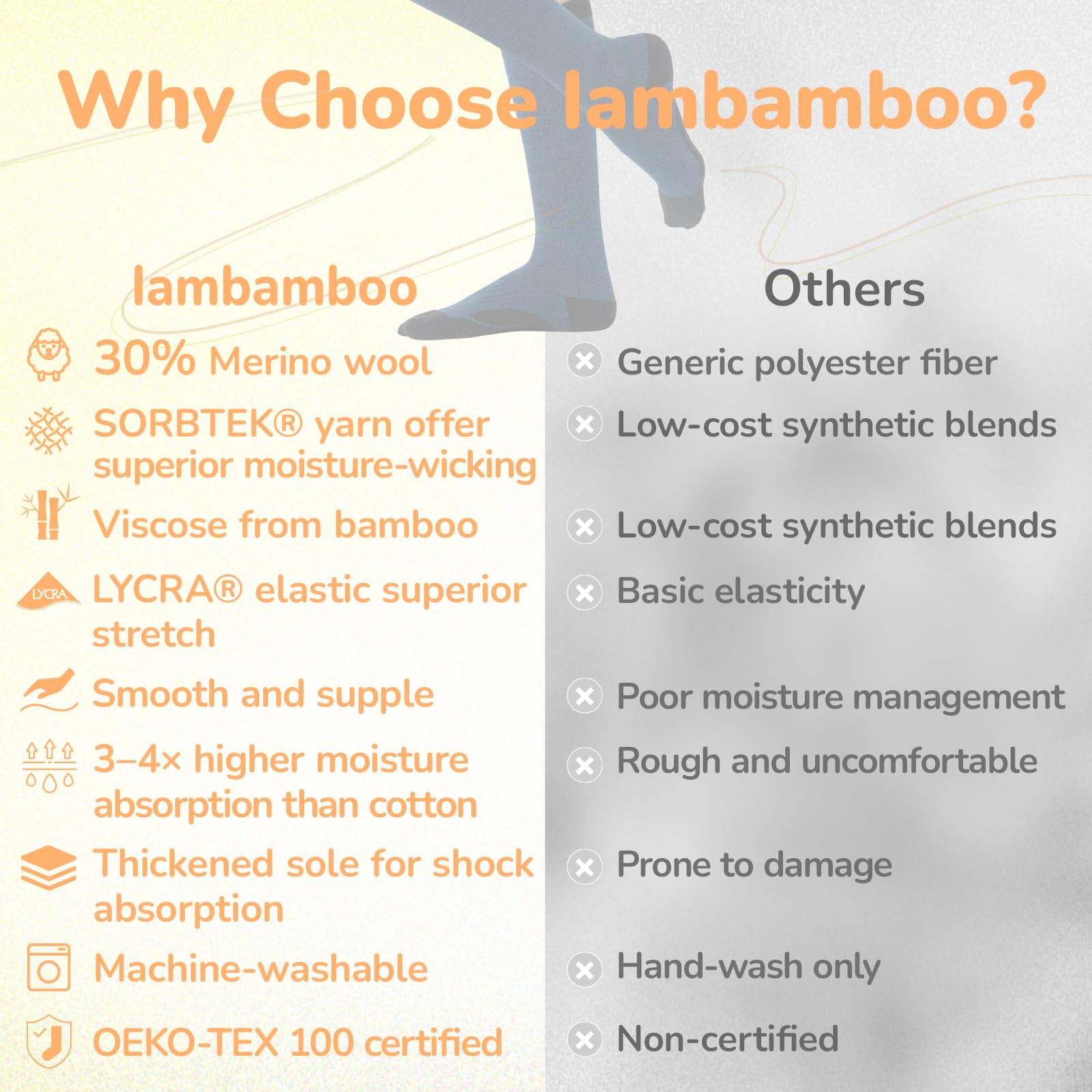 Ultra Soft & Breathable: The compression socks is made of MERINO WOOL & VISCOSE from BAMBOO, which is anti-odor, moisture-wicking, thermoregulating, breathable, ultra-soft, lightweight, perfect for all-season comfort. Arch Support assists in optimizing foot force, Seamless Toe Closure protect your toes