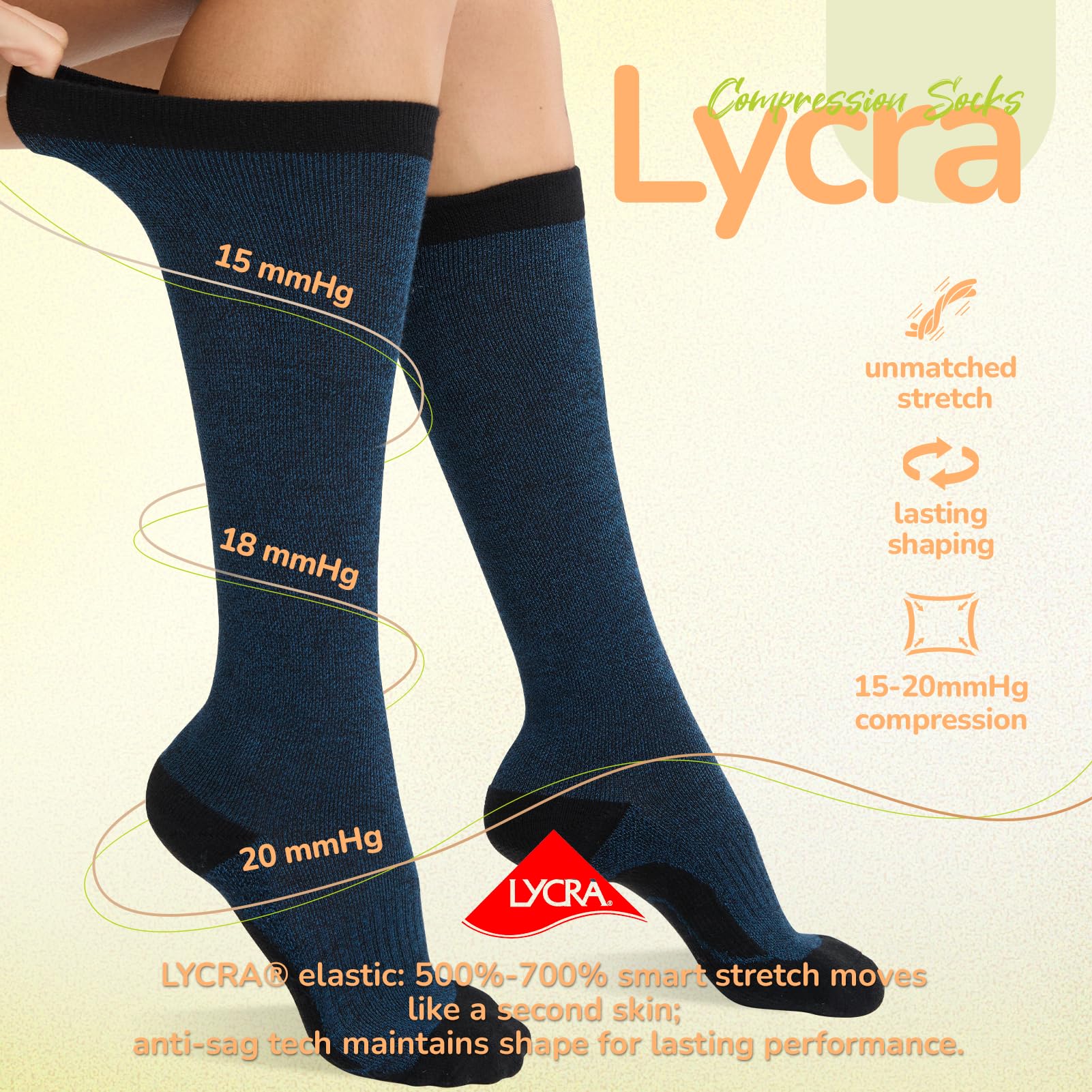 DURABLE & EASY CARE: Reinforced footpads can absorb shock, protect wear-prone parts. LYCRA enhance durability and comfort. Pre-shrunk compression stockings resist shrinking and maintain shape through washes; machine washable for convenience