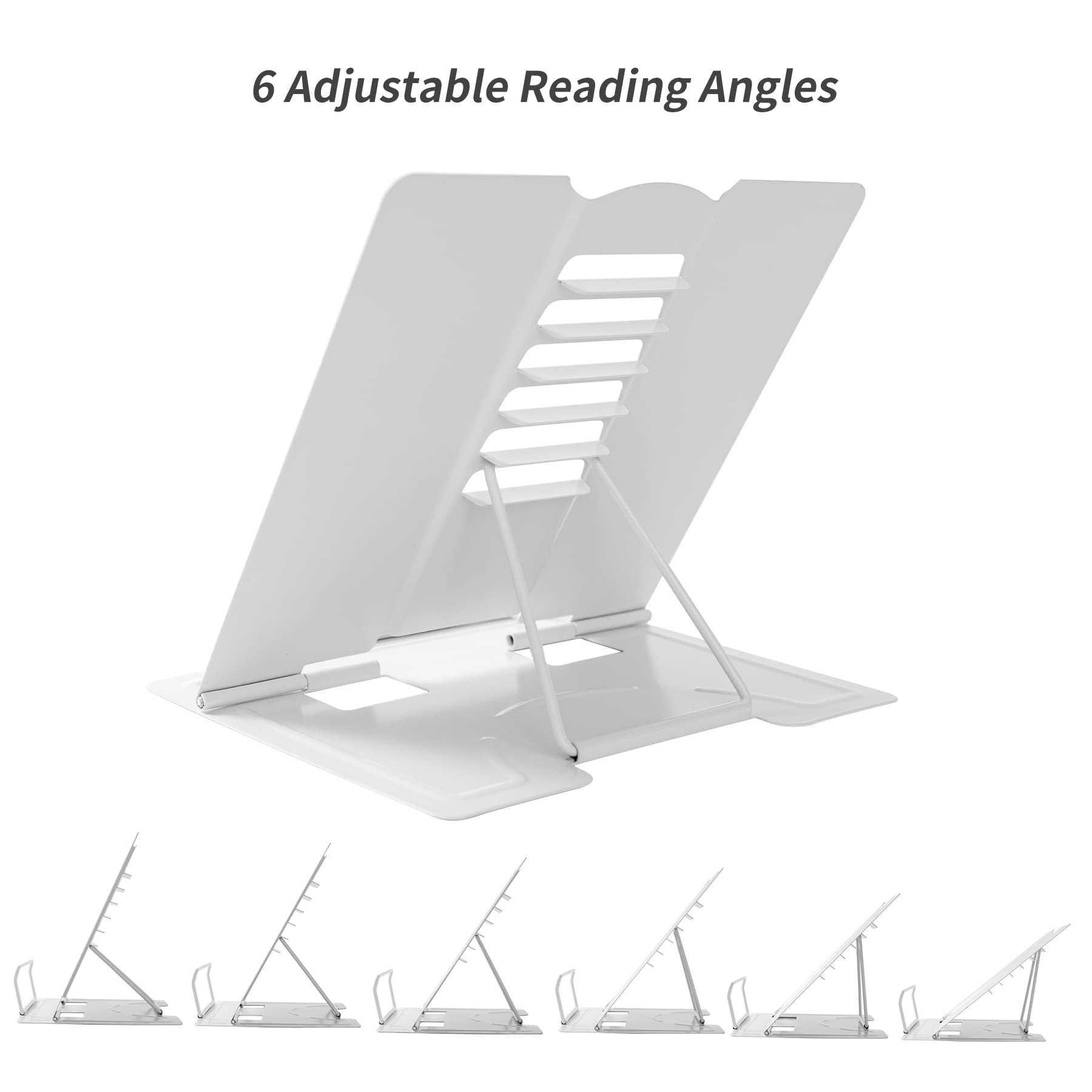 【Adjustable Book Holder】 Book Holder have six reading positions,The multiple notches on the backrest can adjust its height and angle.Adjust the height between the eyes and reading books or documents well