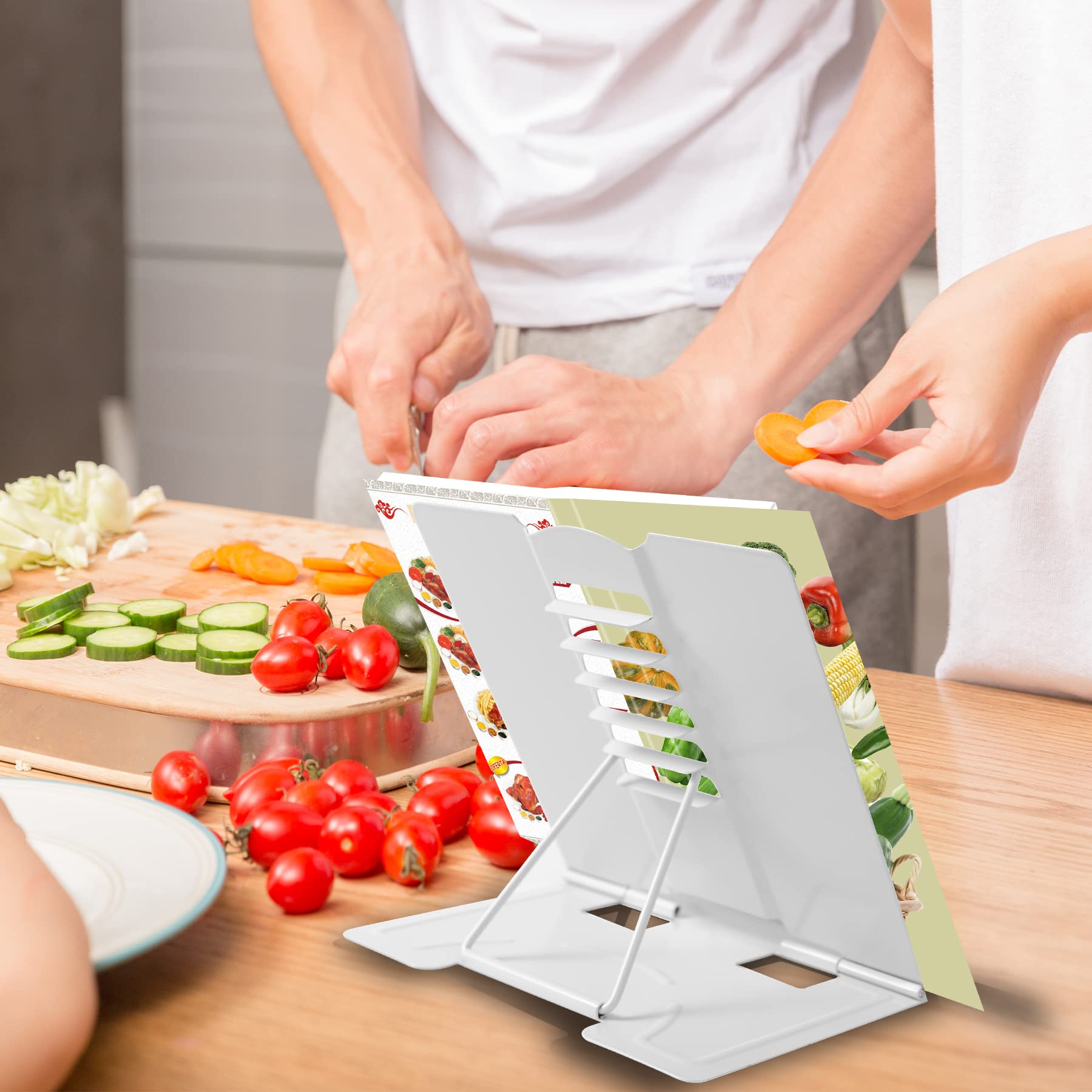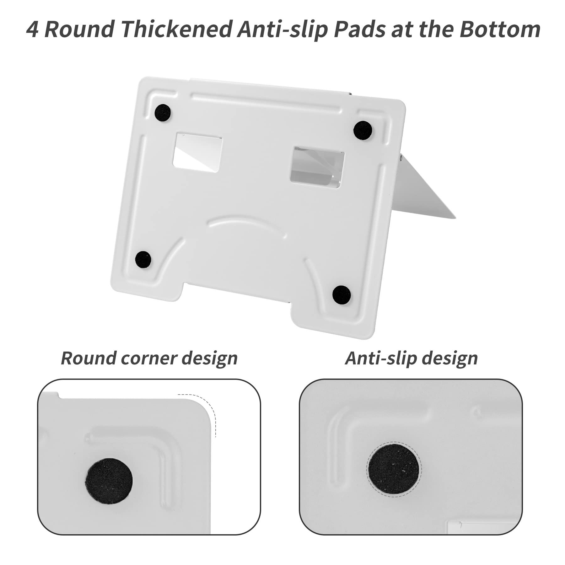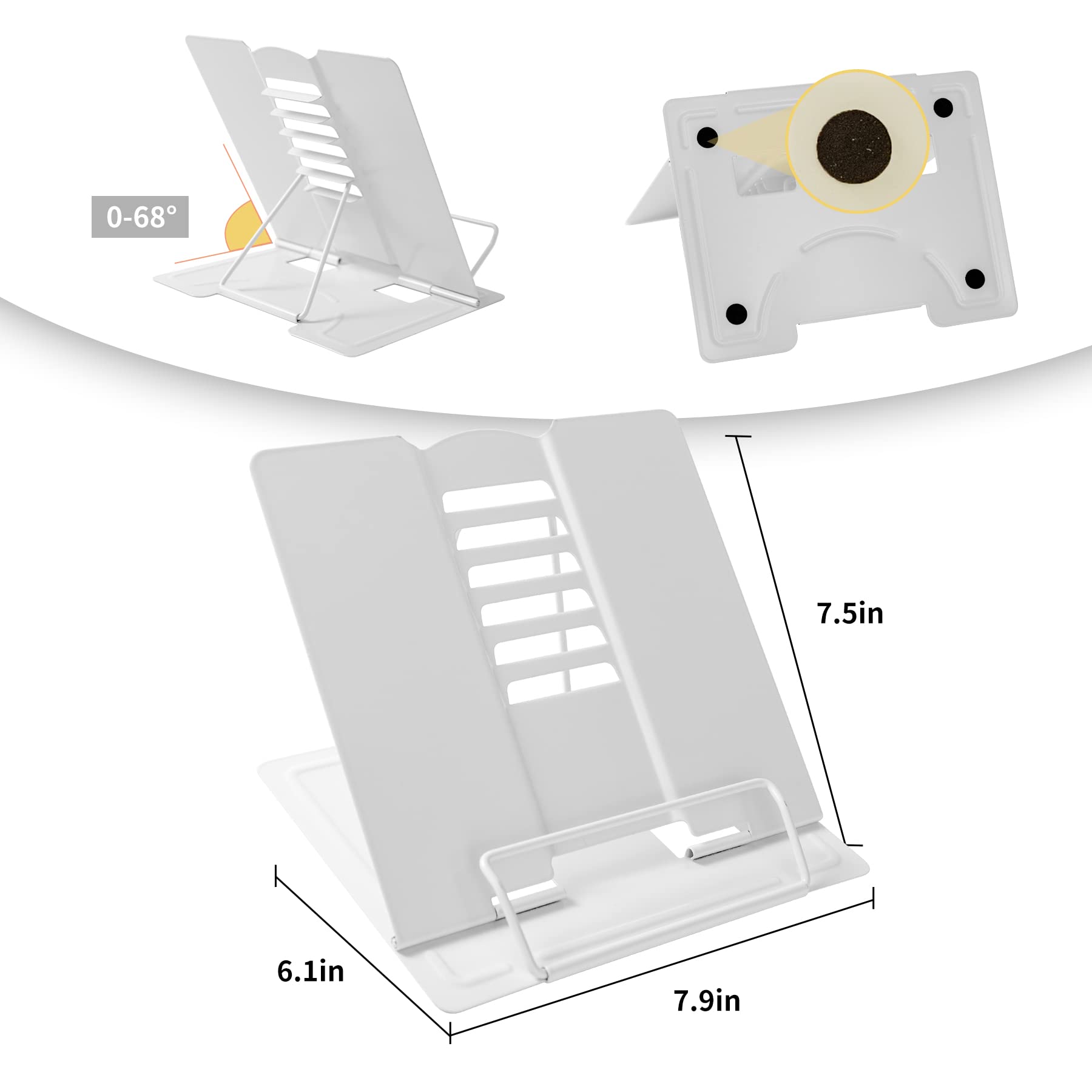 【Book Stand for Reading】Length-8.3in, Width-6.3in There are 4 skid-proof pad glued at the bottom of the book display stand on kitchen top desktop countertop or other flat and smooth surface while holding without sliding off or falling down