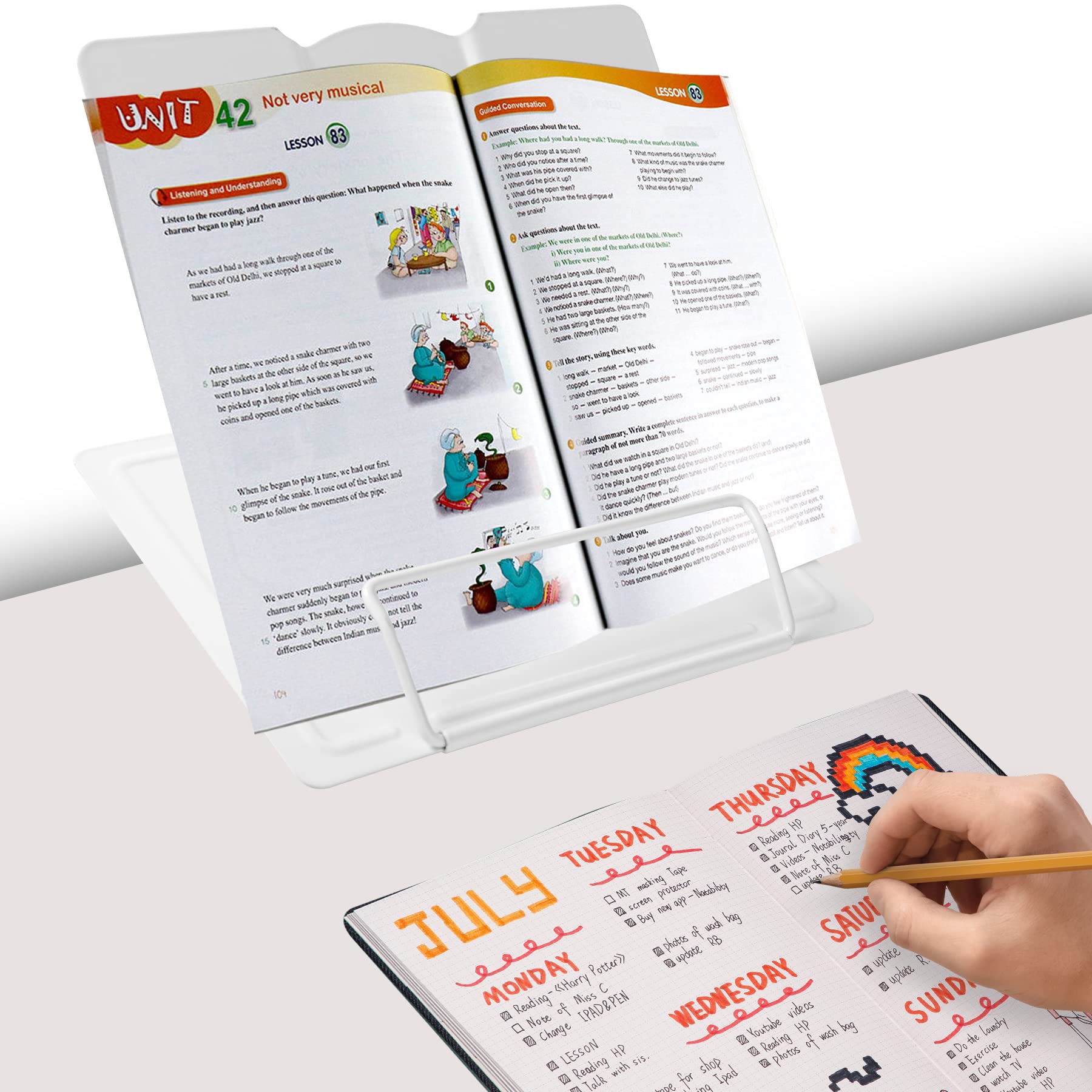 【Book Holder for Reading】The book holder is designed for keeping your hands-free when we are reading cookbook magazine painting papers documents text books sheet music catalogs notetablet or iPad. Support thicker books in school library dorm office or any other desktop.