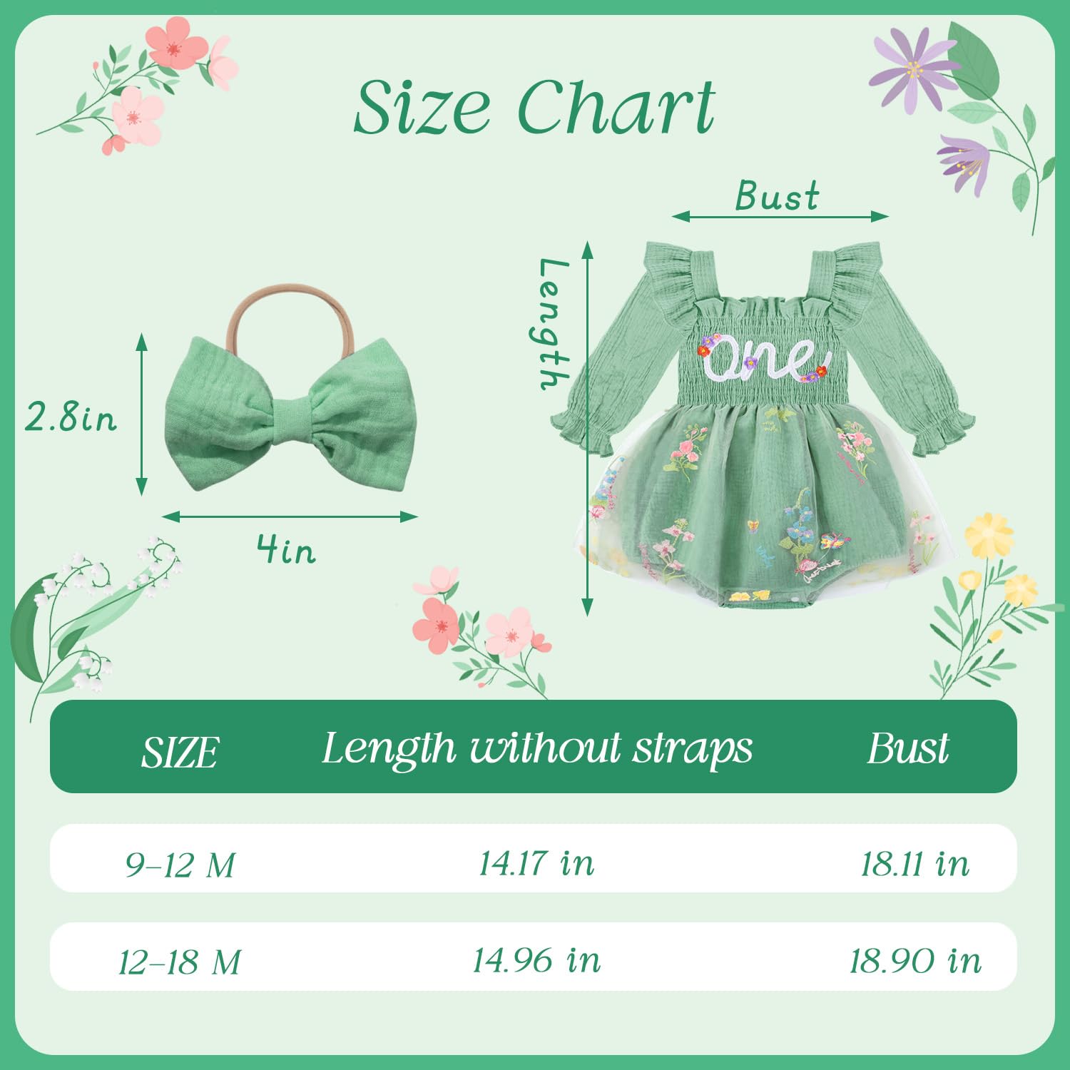 【Size Selection】We have two sizes of 1 year old girl clothes, suitable for 9-12 months, 12-18 months baby wear. The dress's chest and neckline have a certain amount of elasticity to stretch, ensuring a comfortable fit and free movement. Please refer to the size table for details, and if you have any questions about our products, please feel free to contact us
