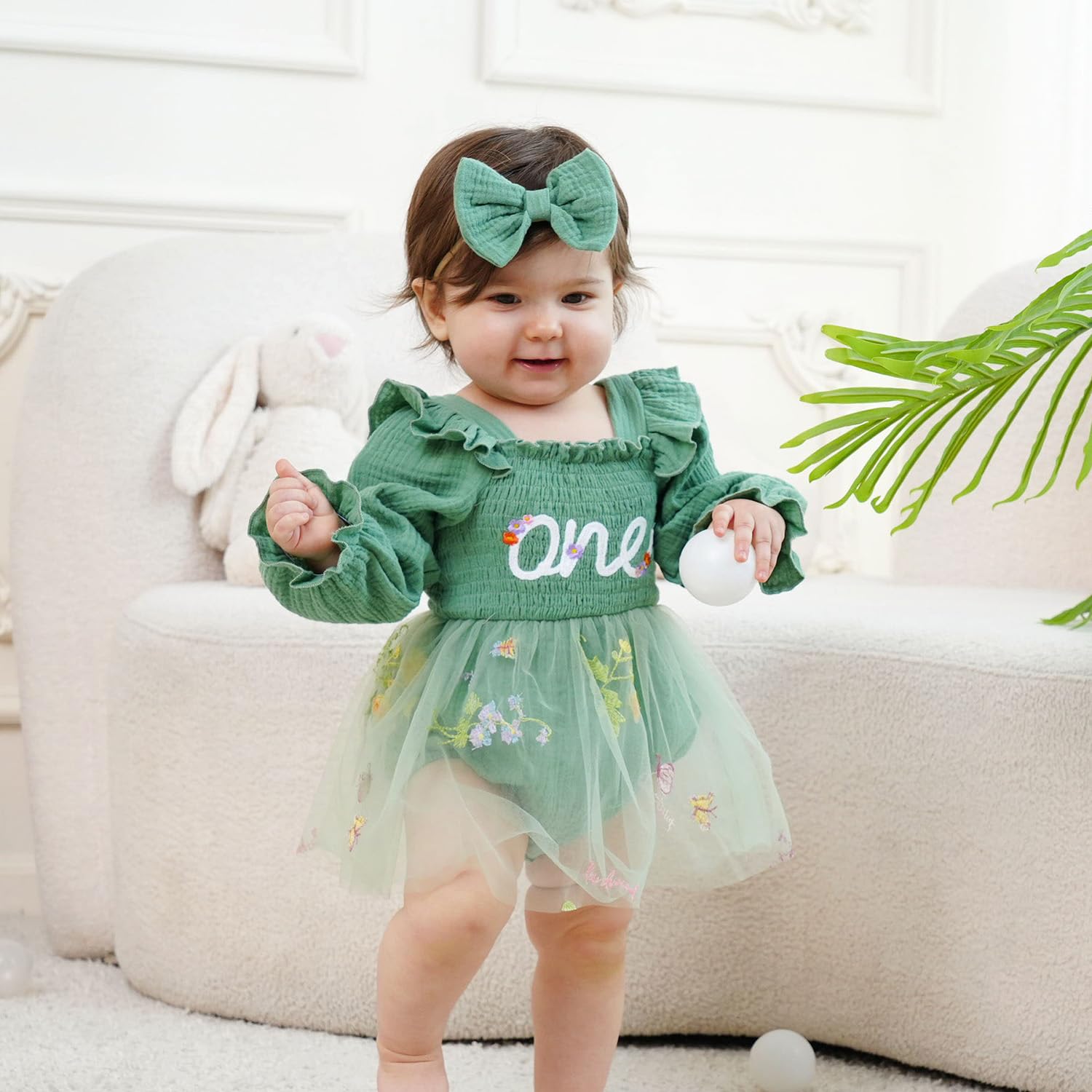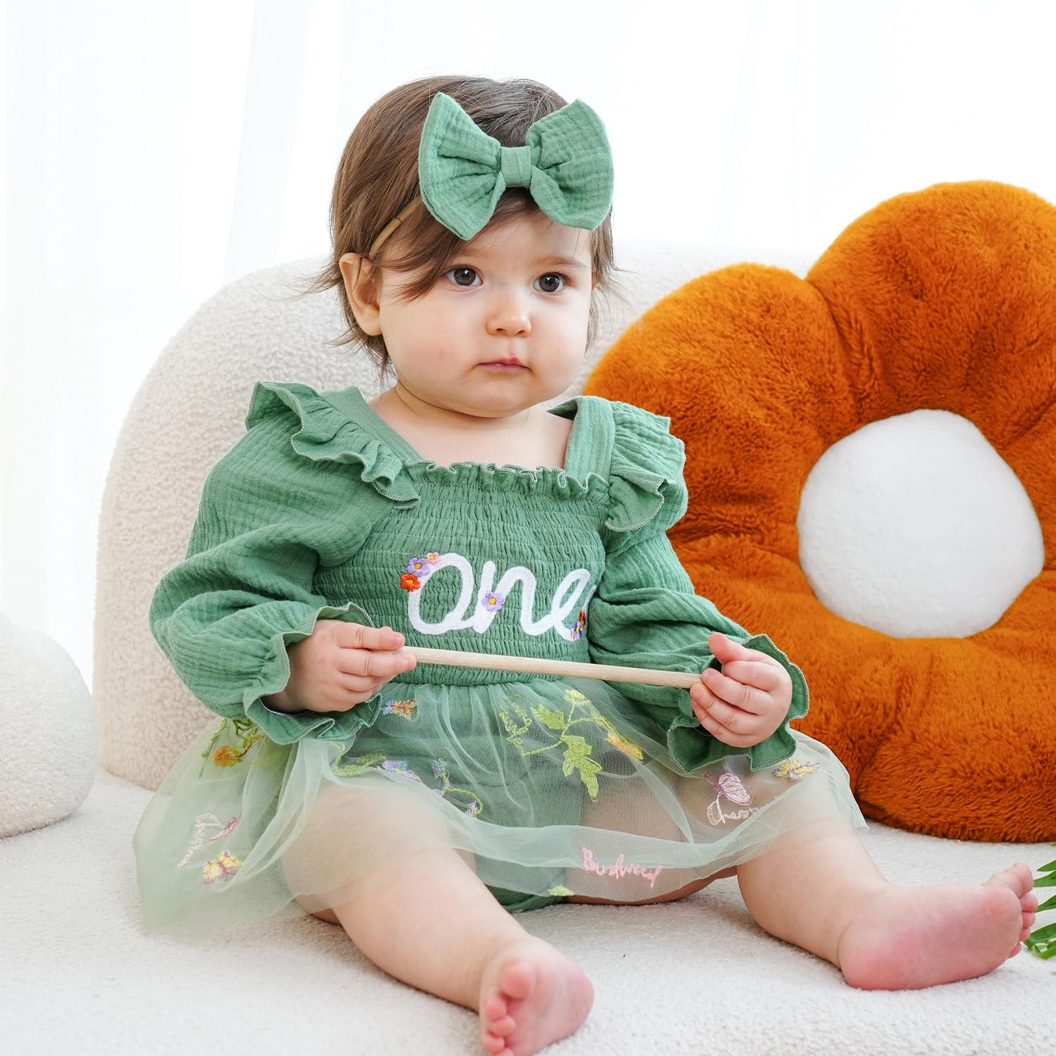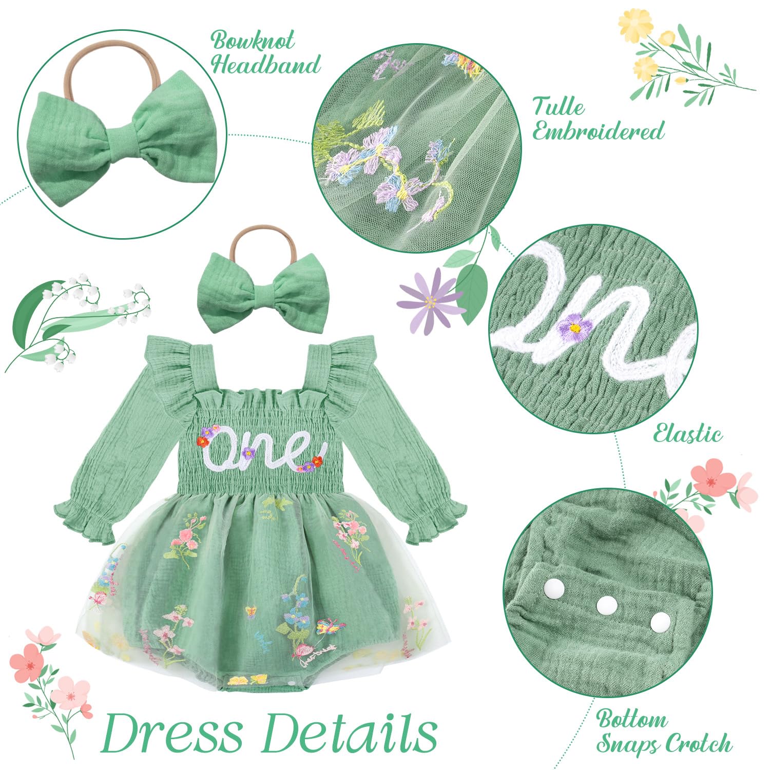 【Adorable Design】Our 1 year old girl gifts is exquisitely designed and adorable, with a square neckline and embroidered "one" pattern on the chest to highlight its uniqueness. The baby qirl dresses is made of delicate embroidered mesh, which not only allows for breath but also adds elegance, making your girl sweeter and more charming