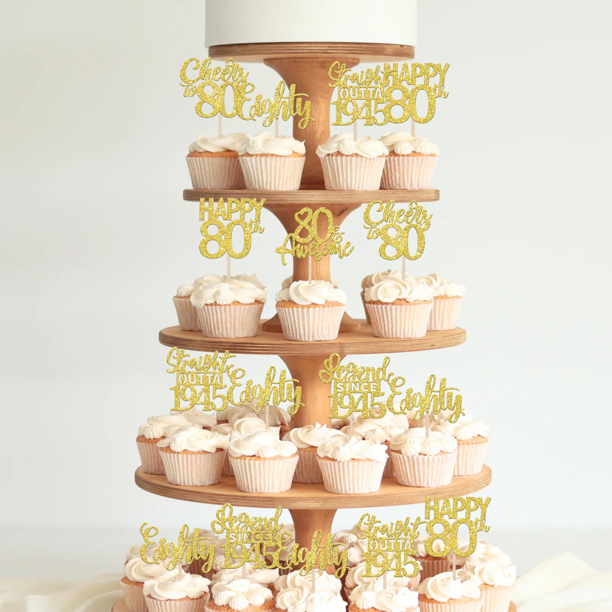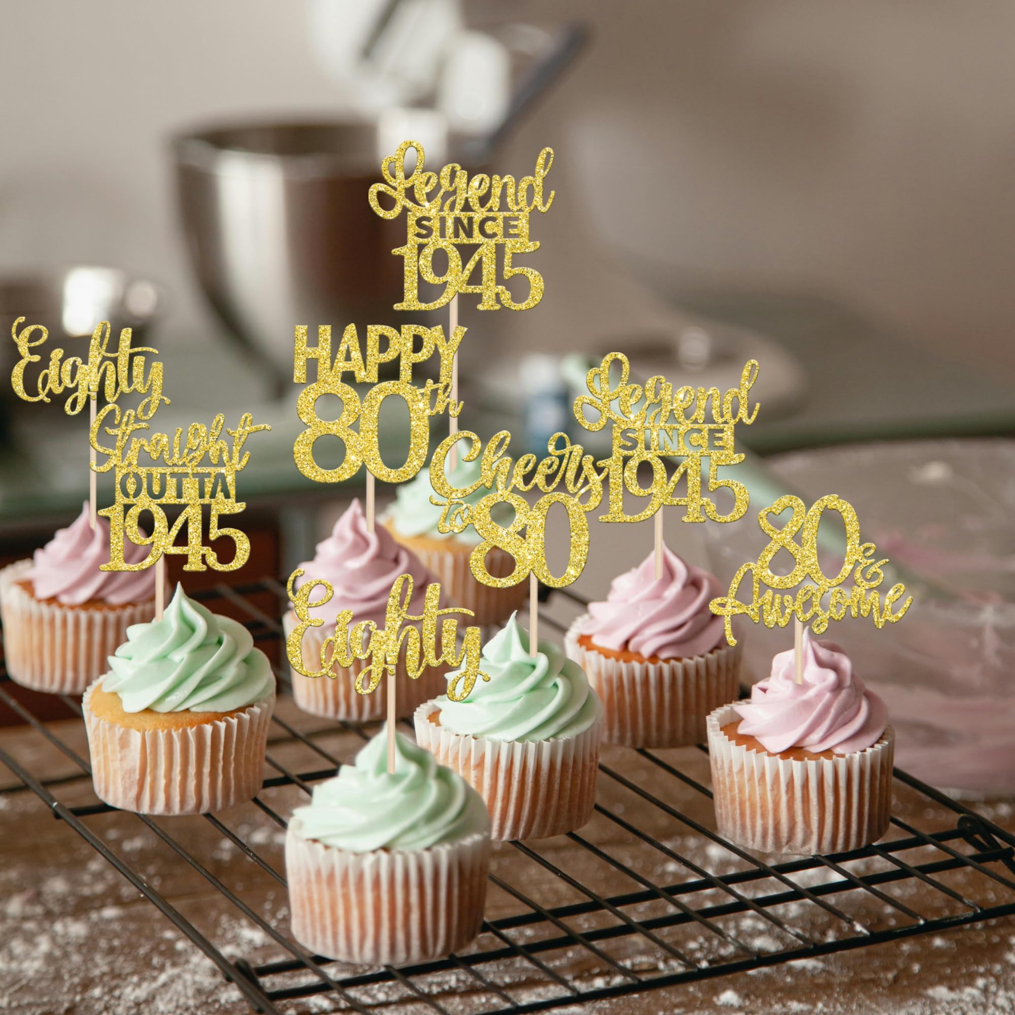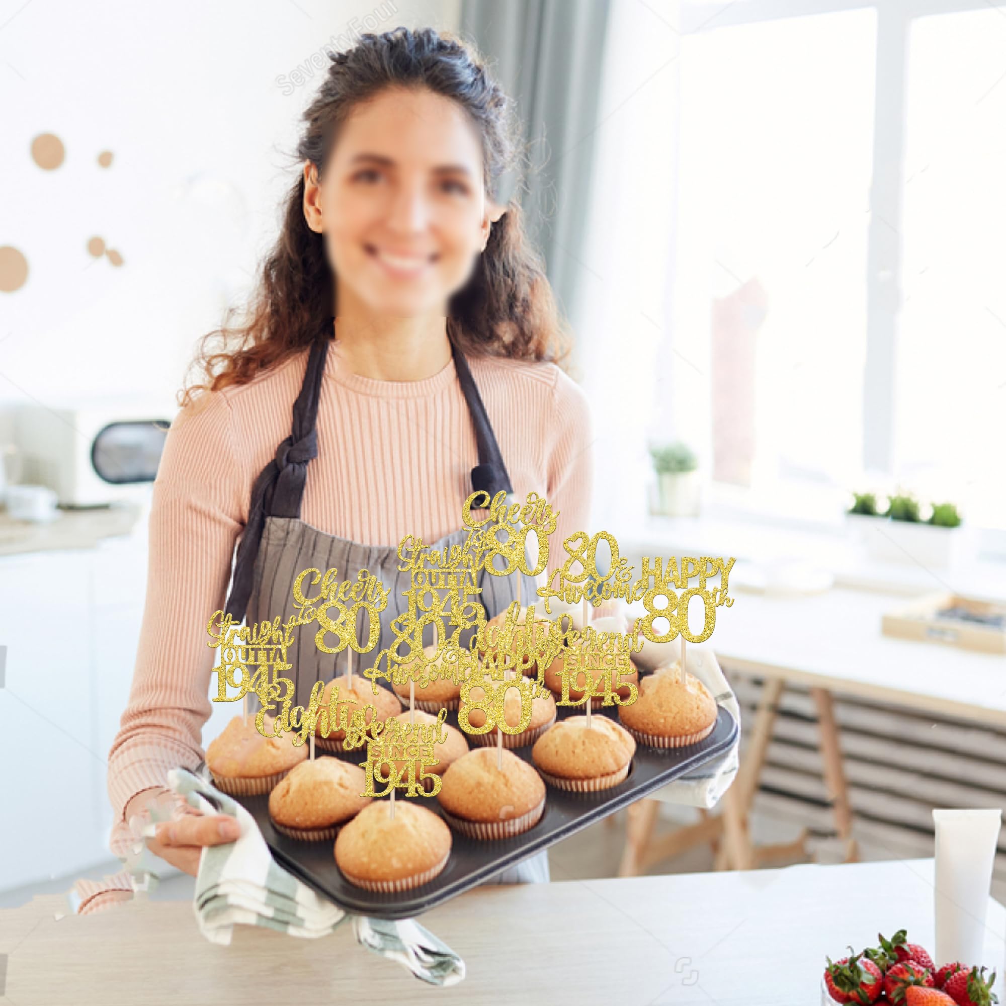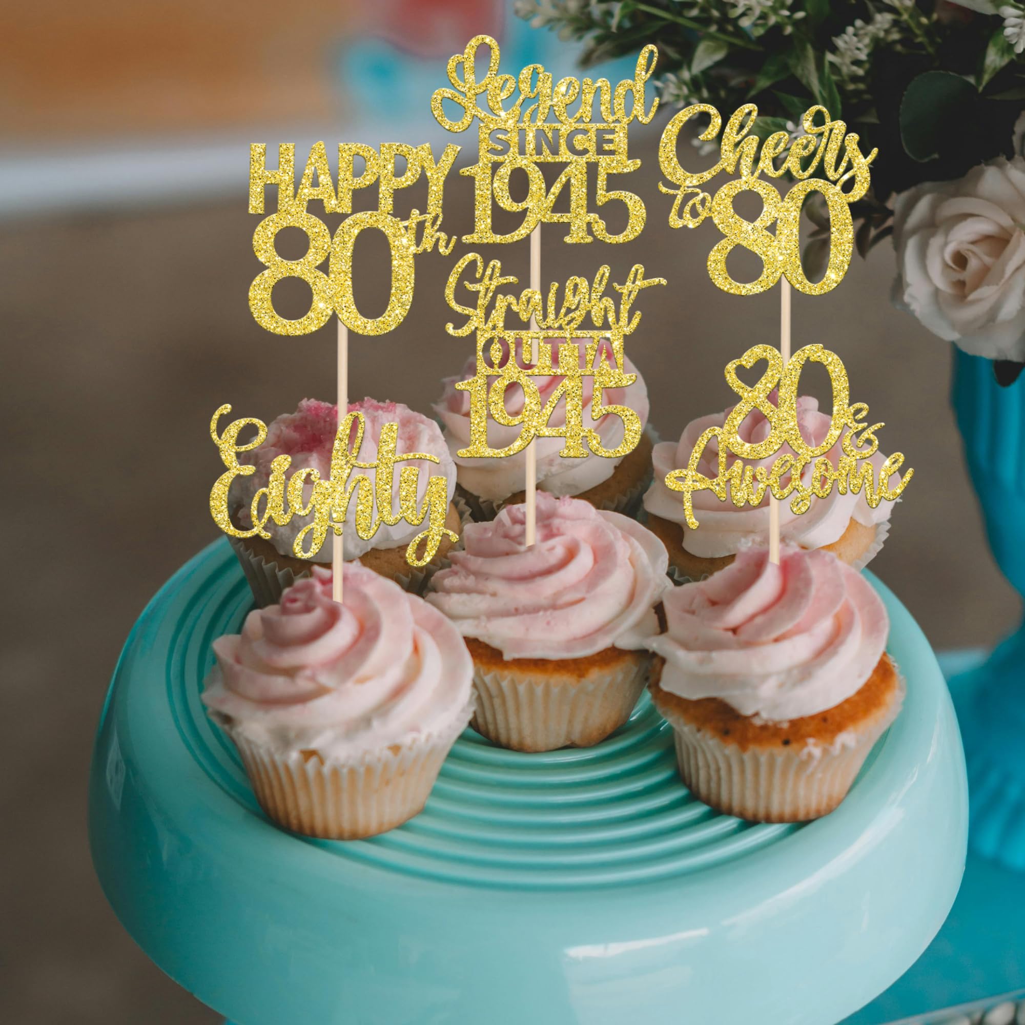 24PCS Happy 80th Birthday Cupcake Toppers Eighty Straight Outta 1945 Cupcake Picks Cheers to 80 Birthday Decorations Lengend Since 1945 Cupcake Decorations for 80th Birthday Anniversary Party Cake Decorations Supplies Perfect for legend since 1945 theme party, 80th anniversary theme party,cheers to 80 years theme party, 80 awesome theme party cupcake decorations supplies. Pack of 24 pcs,4 pcs of each design. The size is 2.3*4.5/ 2.4*4.5/ 2.7*4.5/ 2.4*4.7/ 2.6*3.9/ 2.4*4.7 inch ( with stick ) Made of high quality paper card stock,thick and sturdy. These straight outta 1945 cupcake toppers are one side glitter, another side is white, and they are intended for decoration only, please do not put them in oven or microwave. If the item you received has any defects, please contact us immediately.we will deal with it within 24 hours.