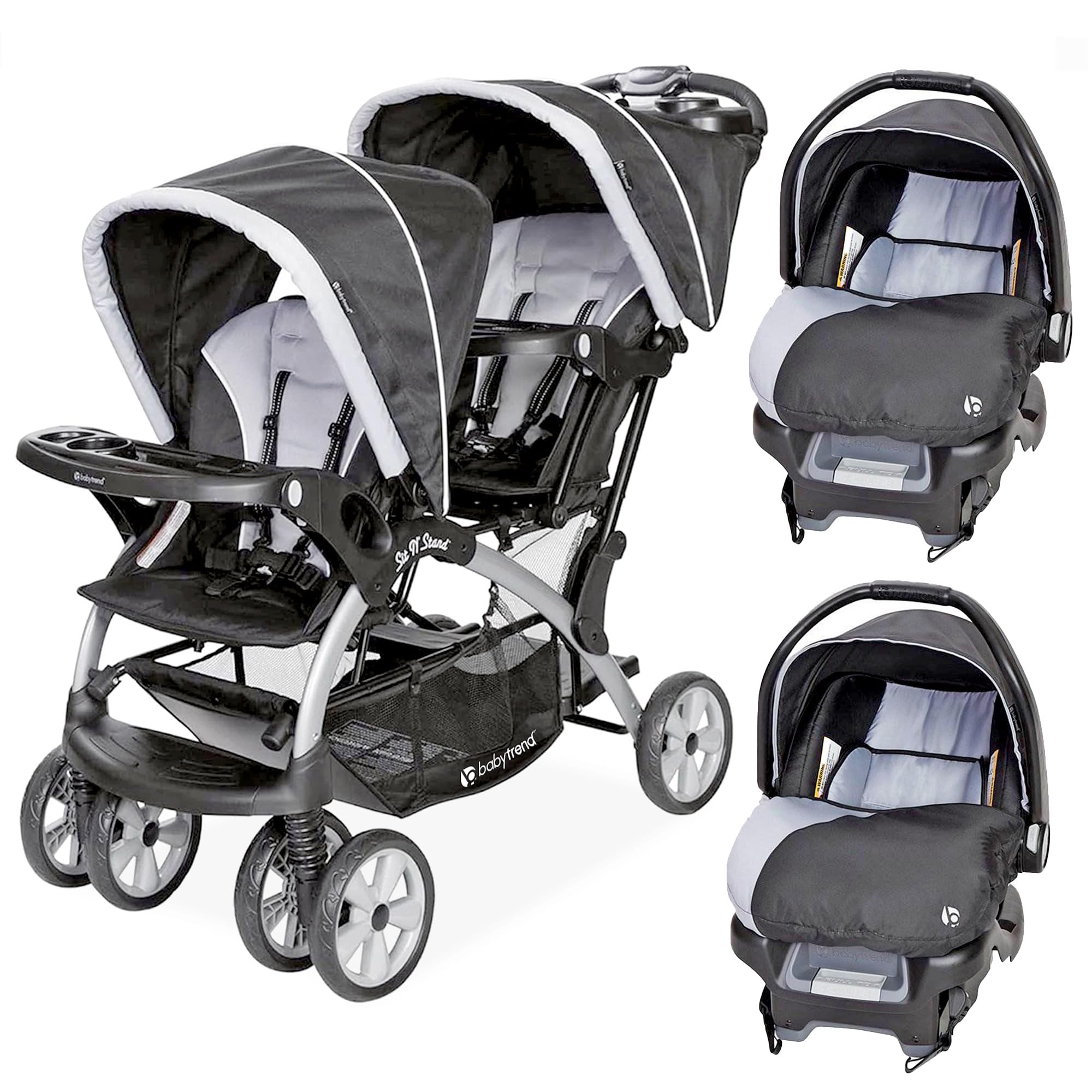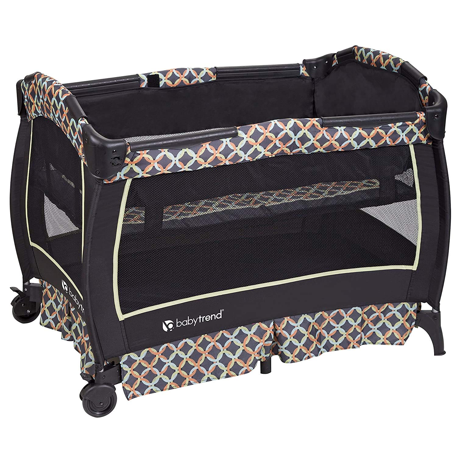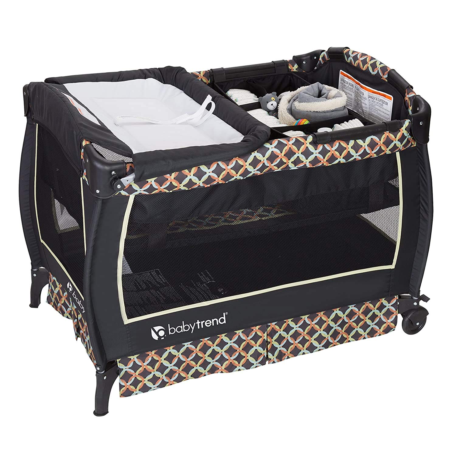 The baby trend twins nursery center playard is the perfect solution for parents with twins. It features two removable rock-a-bye bassinet side by side, with their own canopy and carry handle, plush fabric and mesh sides for proper ventilation for removability. Each bassinet includes 2 toys. The playard includes a removable full bassinet, flip away changing table, a deluxe parent organizer. Easy one-hand locking mechanism makes the playard stable and it can be moved from place to place with large wheels and secured with brakes. Also included is a convenient travel/storage tote bag. Your baby will enjoy the electronic music center with volume control, nightlight, and vibration which includes two styles of music and nature sounds. Playard: birth-30 pounds or 35 inches ,bassinet/changing table: birth-4 m, weight: up to 15 pounds, height: up to 25 inches whichever comes first. Portable Rock-A-Bye Bassinet: Birth ~ 3 m, weight: up to 12 pounds, height: up to 22 inches whichever comes first.