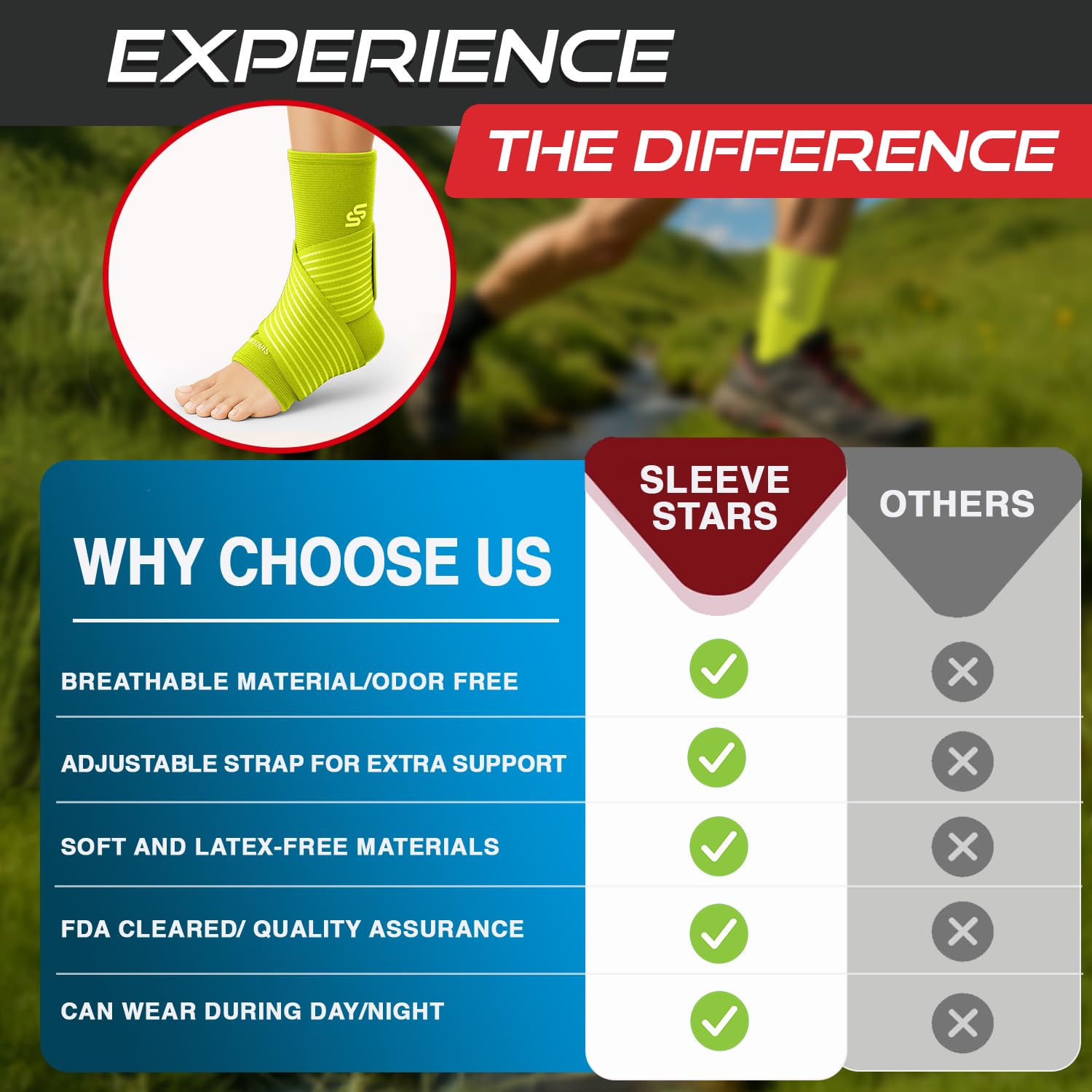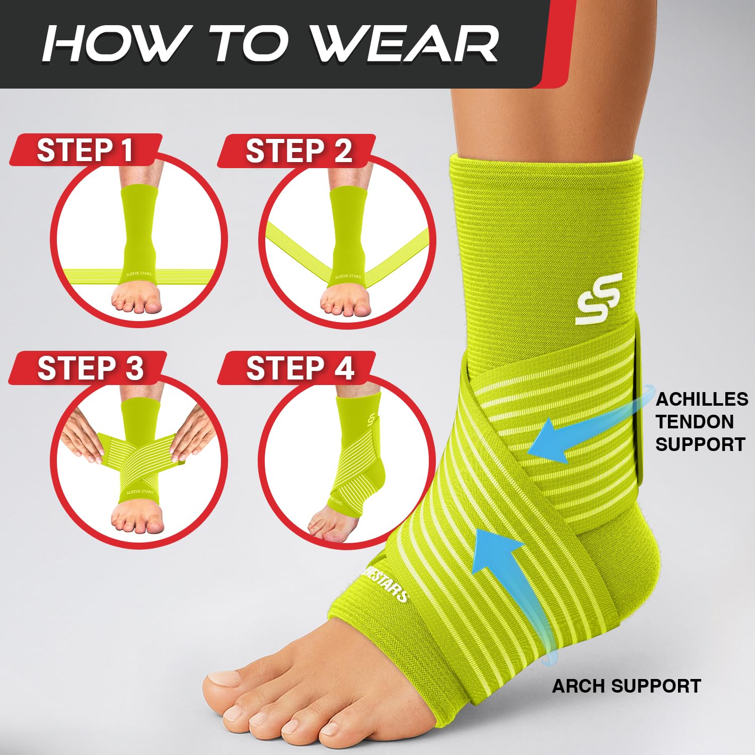 ✅ Great ankle compression: Whether recovering, working, or playing sports, this ankle stabilizer brace for women comfortably supports your feet with targeted and adjustable compression to help increase blood flow. Experience achilles tendonitis brace relief with Sleeve Stars now!
