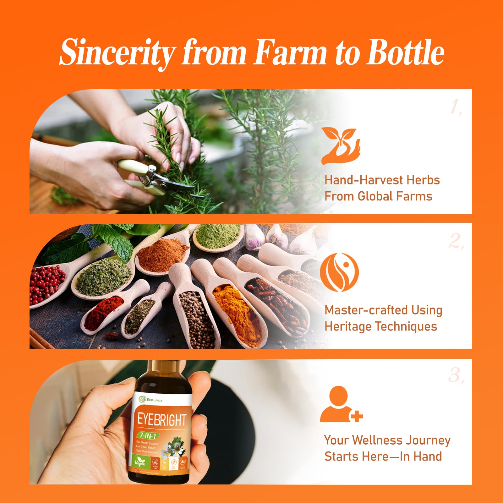 GLOBALLY SOURCED BOTANICAL CARE: ECOLINIA’s EyeBright eye drops are crafted with seasonal herbs carefully selected from the brand’s premium growing regions around the world. The natural ingredients work synergistically to support eye strain relief, soothe eye discomfort, and promote clear visual function—nurturing long-term vitality for healthy eyes.*