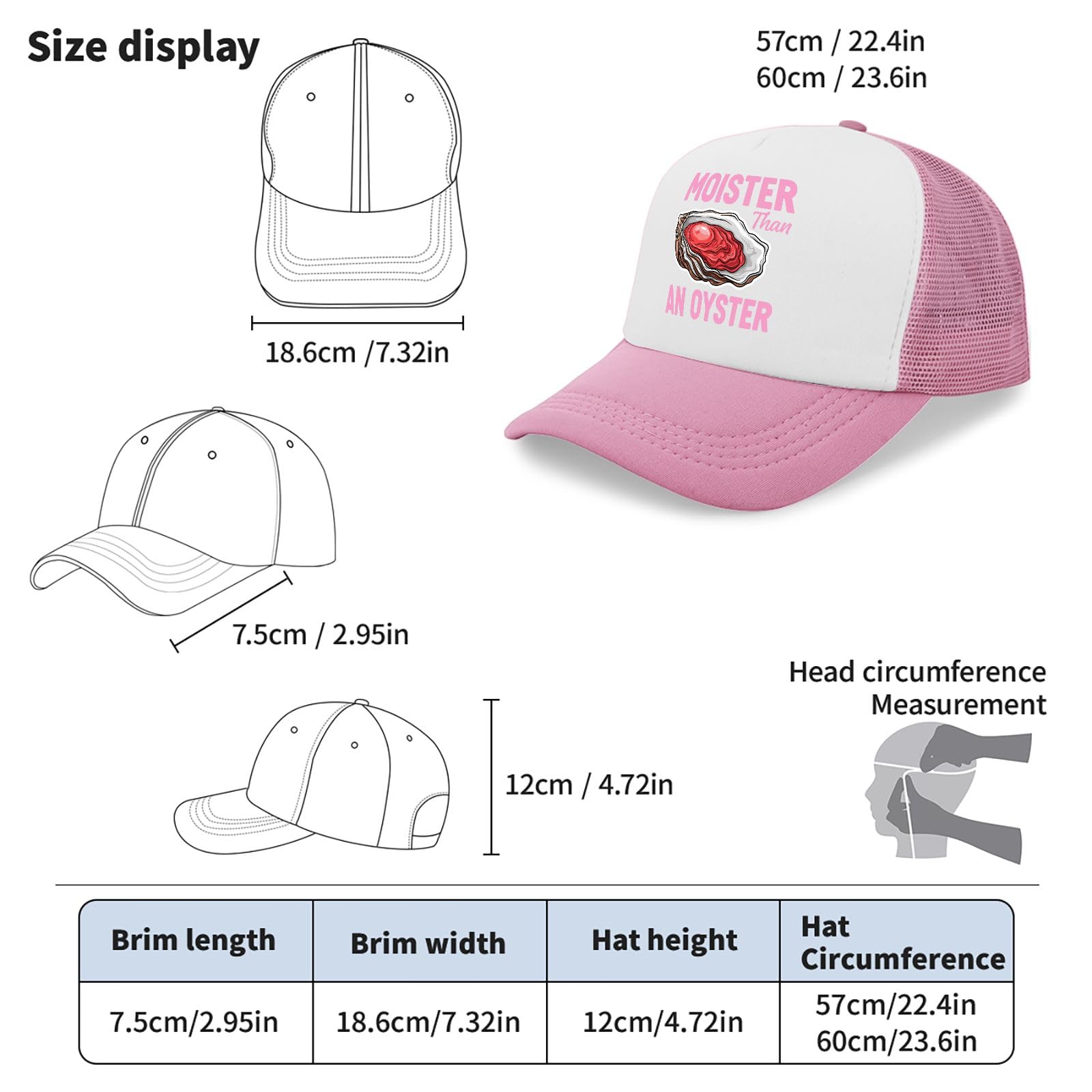 Description Stay cool and stylish with this charming trucker hat featuring an adorable elephant design against a vibrant rainbow background. The classic pink and white color combination offers versatility, while the mesh back panel provides excellent ventilation for breathable comfort on warm days. This baseball cap comes with thoughtful features including a built-in sweatband for moisture control and an adjustable buckle closure for the perfect fit. The structured design maintains its shape with a 7.32-inch brim width and 4.72-inch crown height, fitting head circumferences from 22.4 to 23.6 inches. The durable construction combines a solid front panel with breathable mesh backing, making it ideal for casual outings, sunny days, or adding a playful touch to your everyday wear. The whimsical elephant graphic with floral accents and rainbow stripes brings a cheerful element to this practical accessory, perfect for those who appreciate both function and fun in their headwear.
