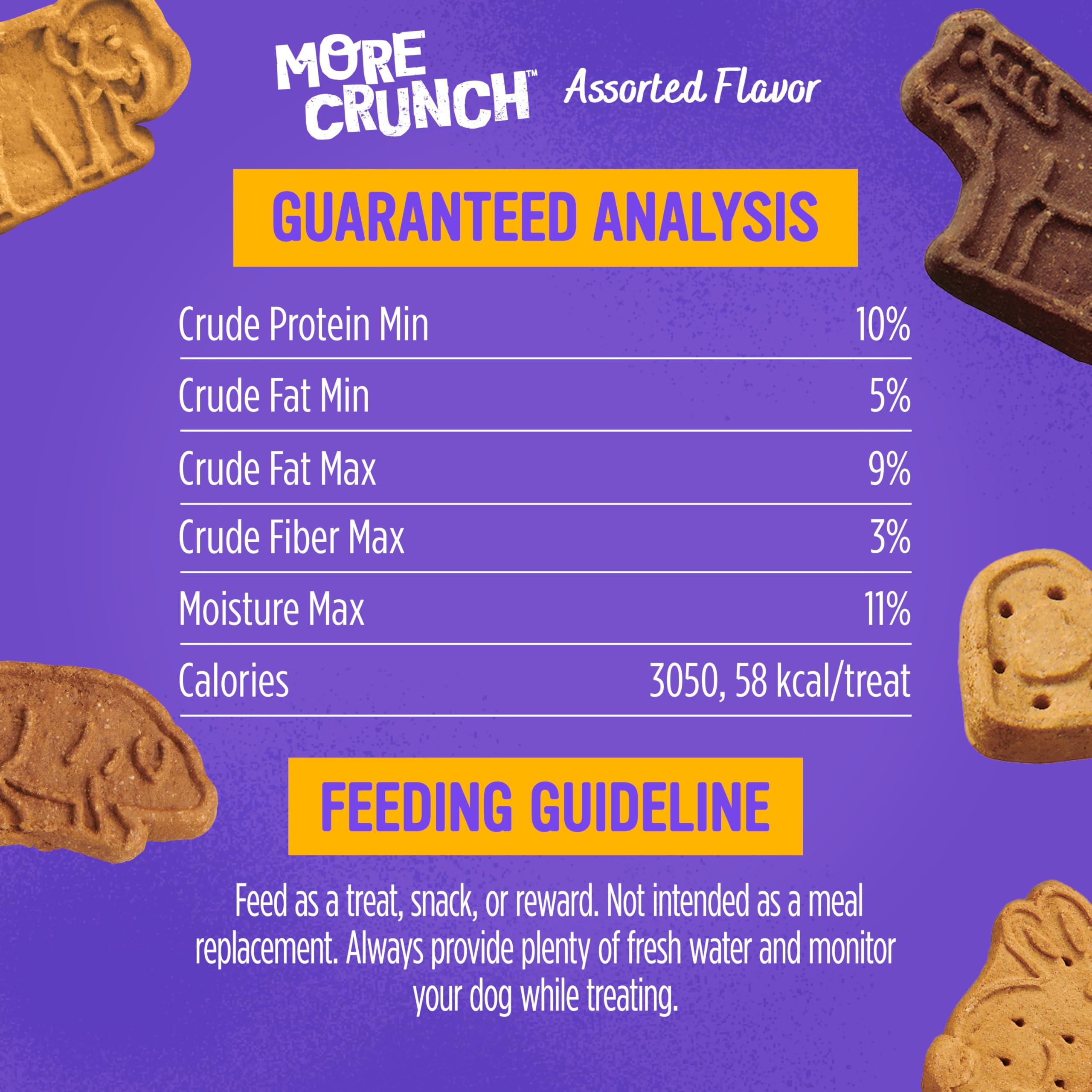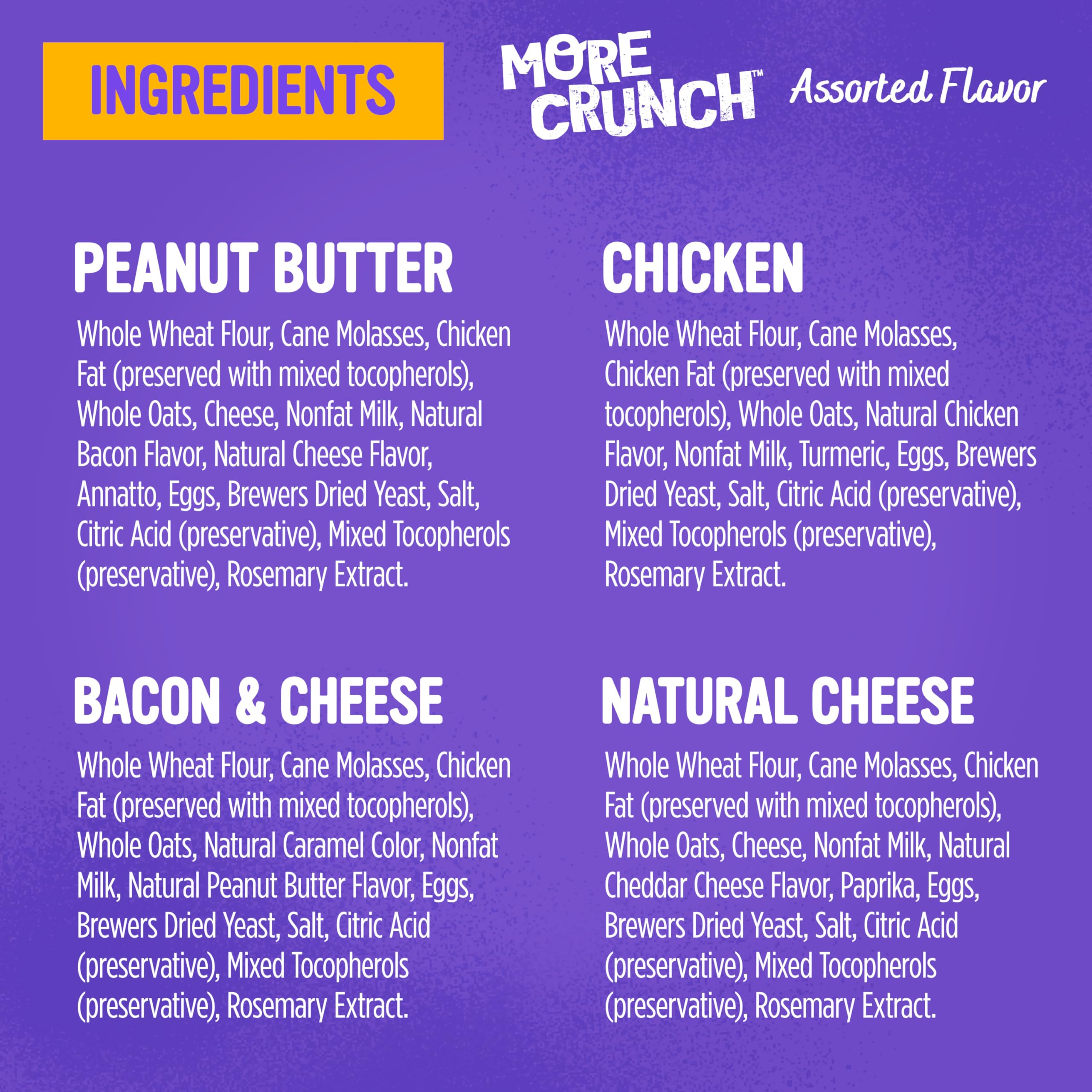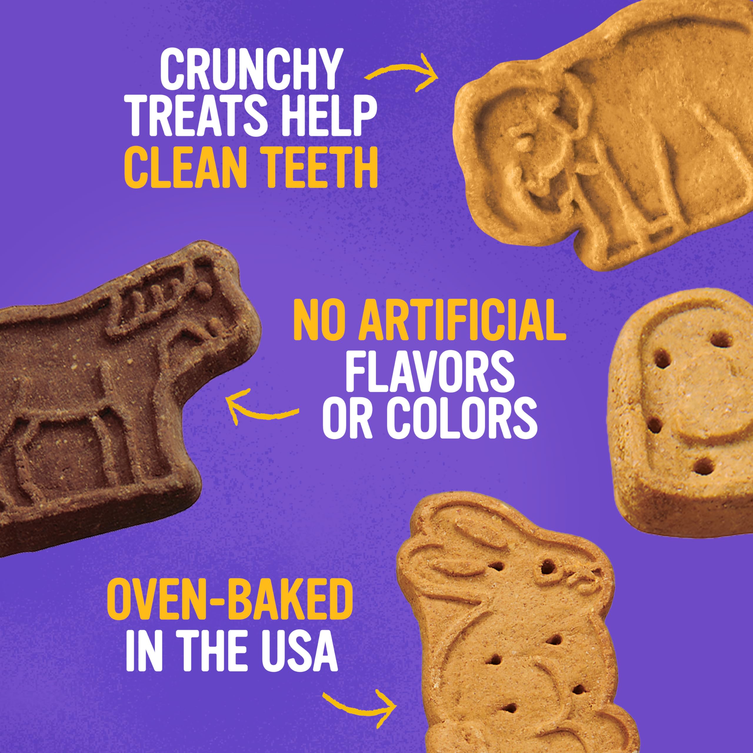 LOW FAT & CRUNCHY DOG TREATS: Our original recipe treats in assorted flavors receive barking ovations from dogs big and small; Made with natural whole wheat, real eggs and nonfat milk; 18 Ounce Box, Pack of 6