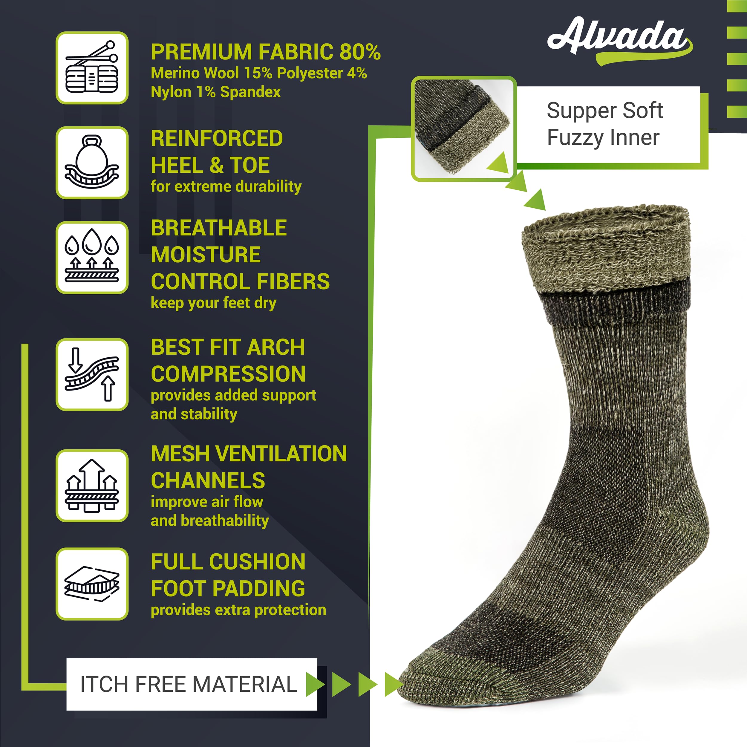 MAKE HIKING A COMFORTABLE EXPERIENCE These Merino wool hiking socks are built to provide you with total support and comfort during your hiking trips, no matter the weather. Each pair of these hiking boot socks is ideal for the rugged terrain, allowing these to be great mens or women's hiking socks