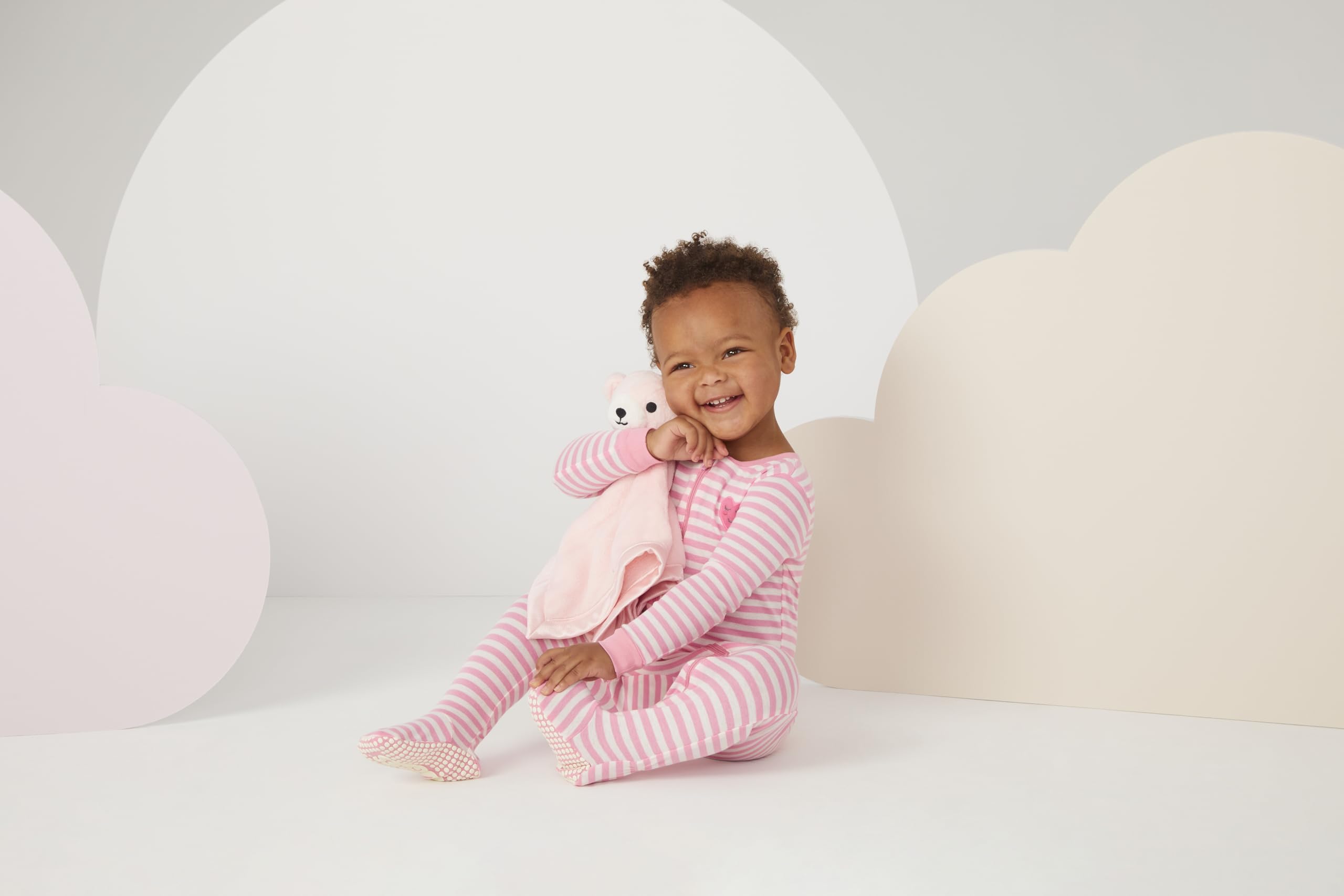 Description Designed by the baby experts at Huggies, this 3-pack of sleep coveralls are made of skin-healthy organic cotton rib knit fabric that feels soft and gentle on your child's precious skin. The full-zip closure makes late-night diaper changes a breeze, elasticized, footed bottoms keep tiny toes warm all night, and silicone grips give your toddler an extra boost when they are on the move. With three adorable prints to choose from, this 3-pack wraps your little one in comfort and cuteness!