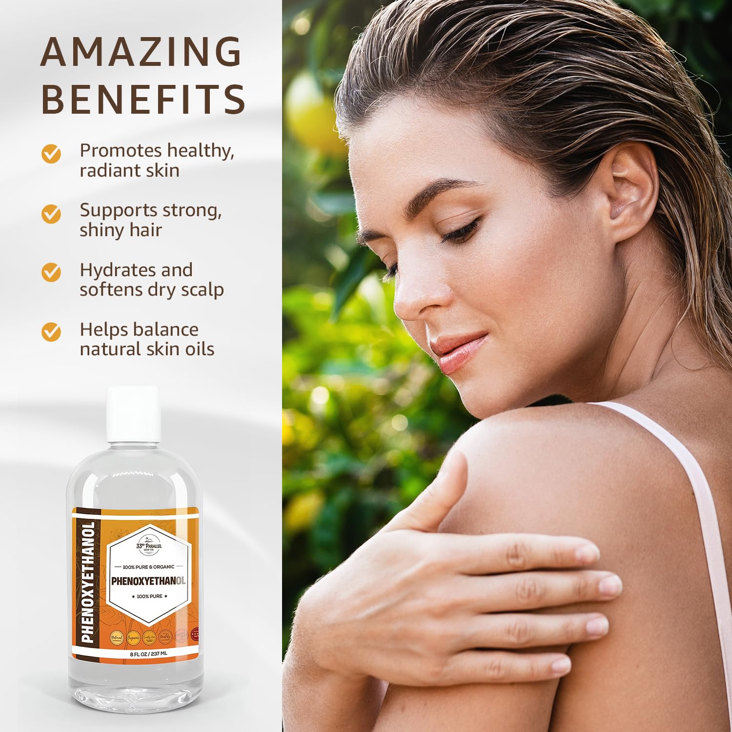 HIGH QUALITY & SKIN FRIENDLY: Our Phenoxyethanol Preservative is 100% pure and it is an easy-to-use formulation that will not affect the texture, fragrance or color of your product. Our phenoxyethanol for cosmetics is gentle enough for all skin types, a mild preservative that is well-tolerated by most people, even those with sensitive skin.