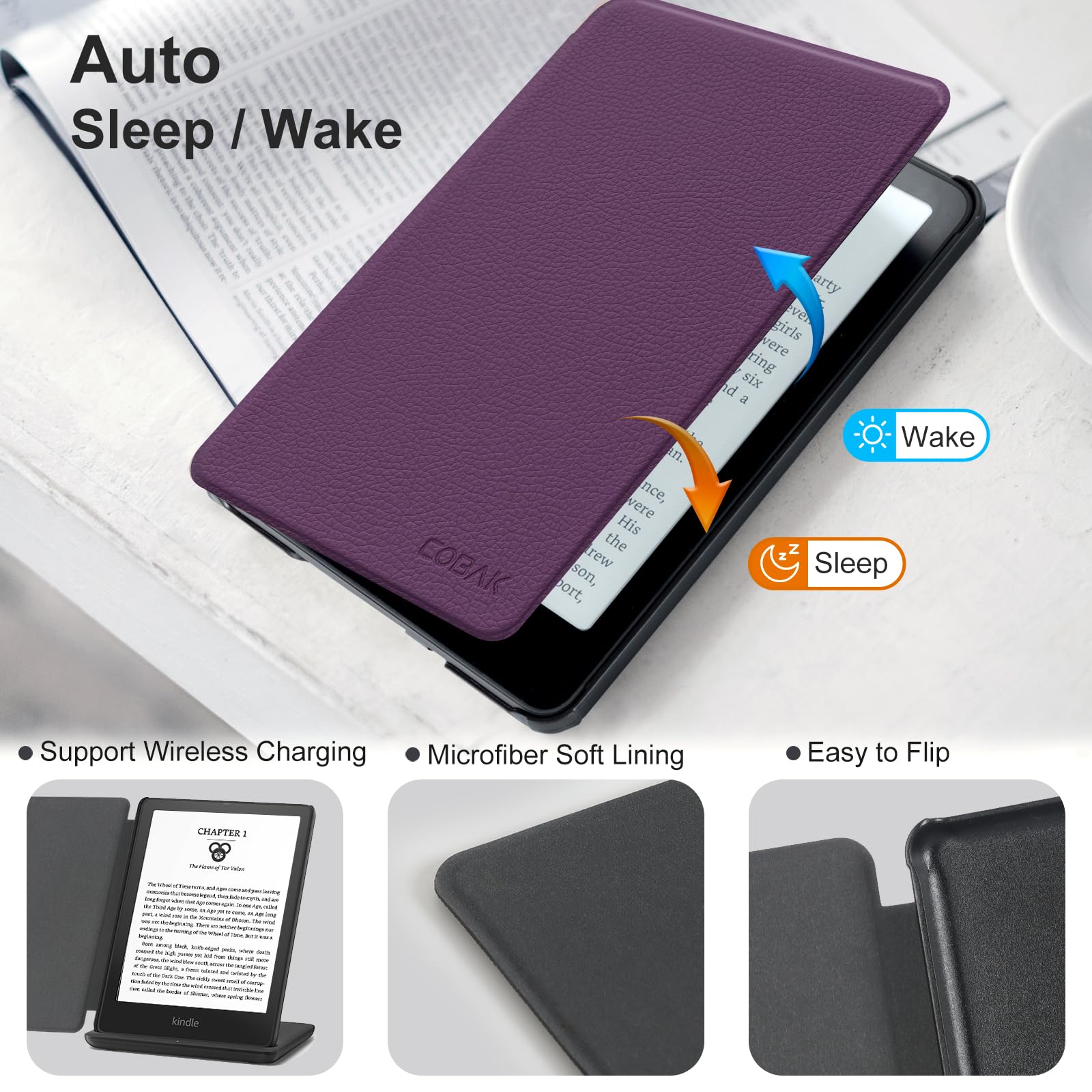 Auto Wake/Sleep Function Automatically wakes your Kindle when you open the cover and puts it to sleep when closed—saving battery life and adding convenience.