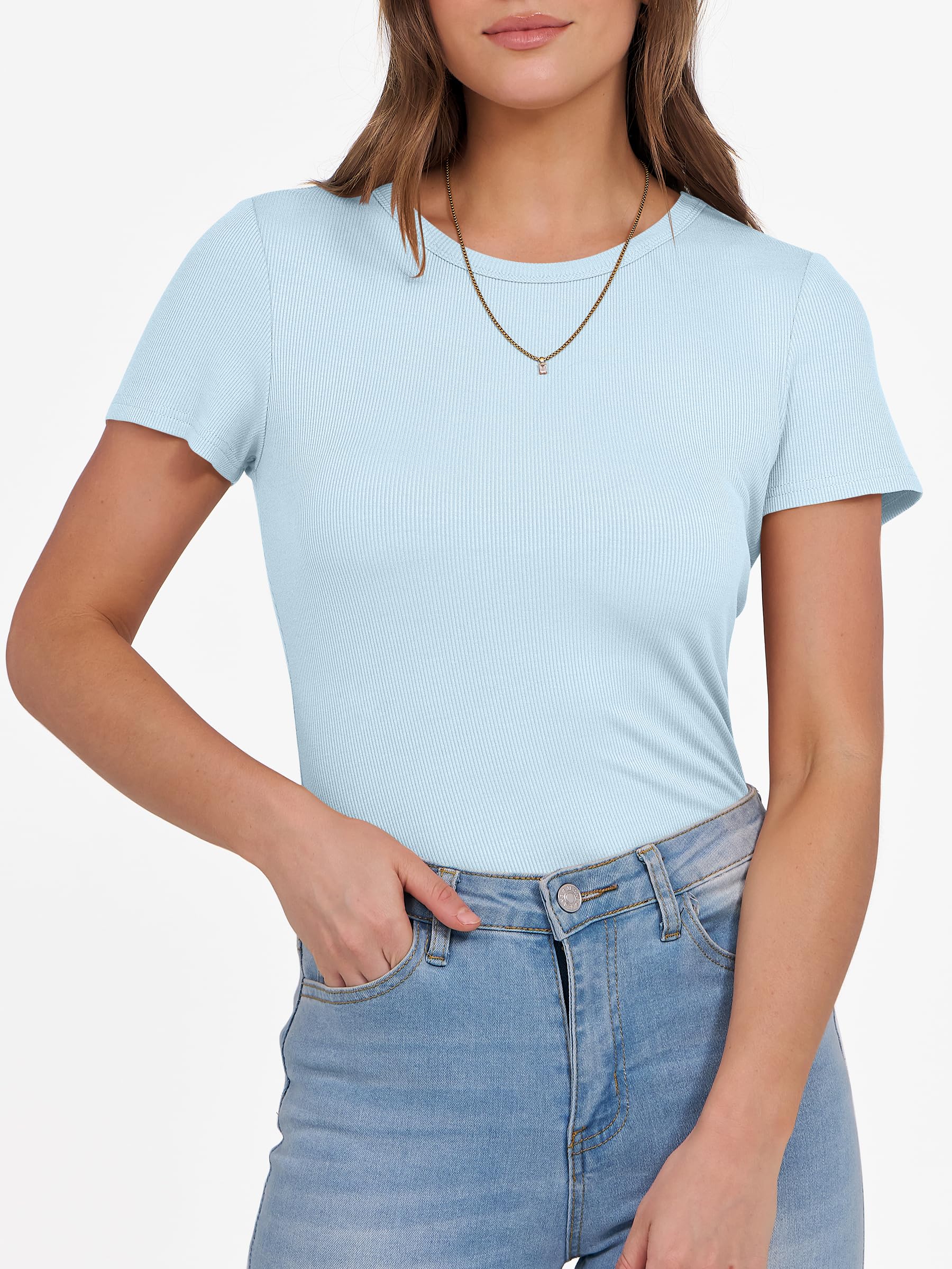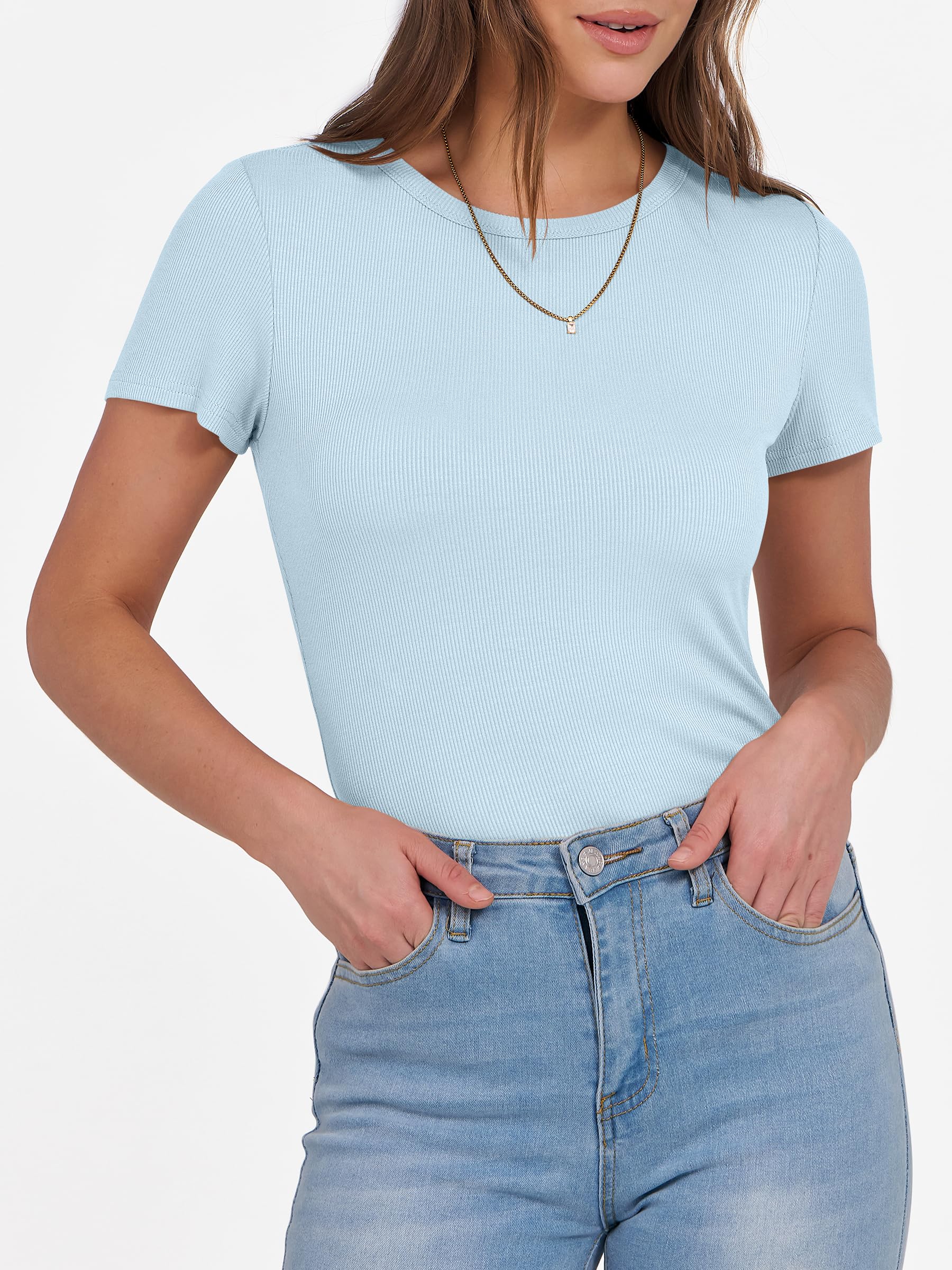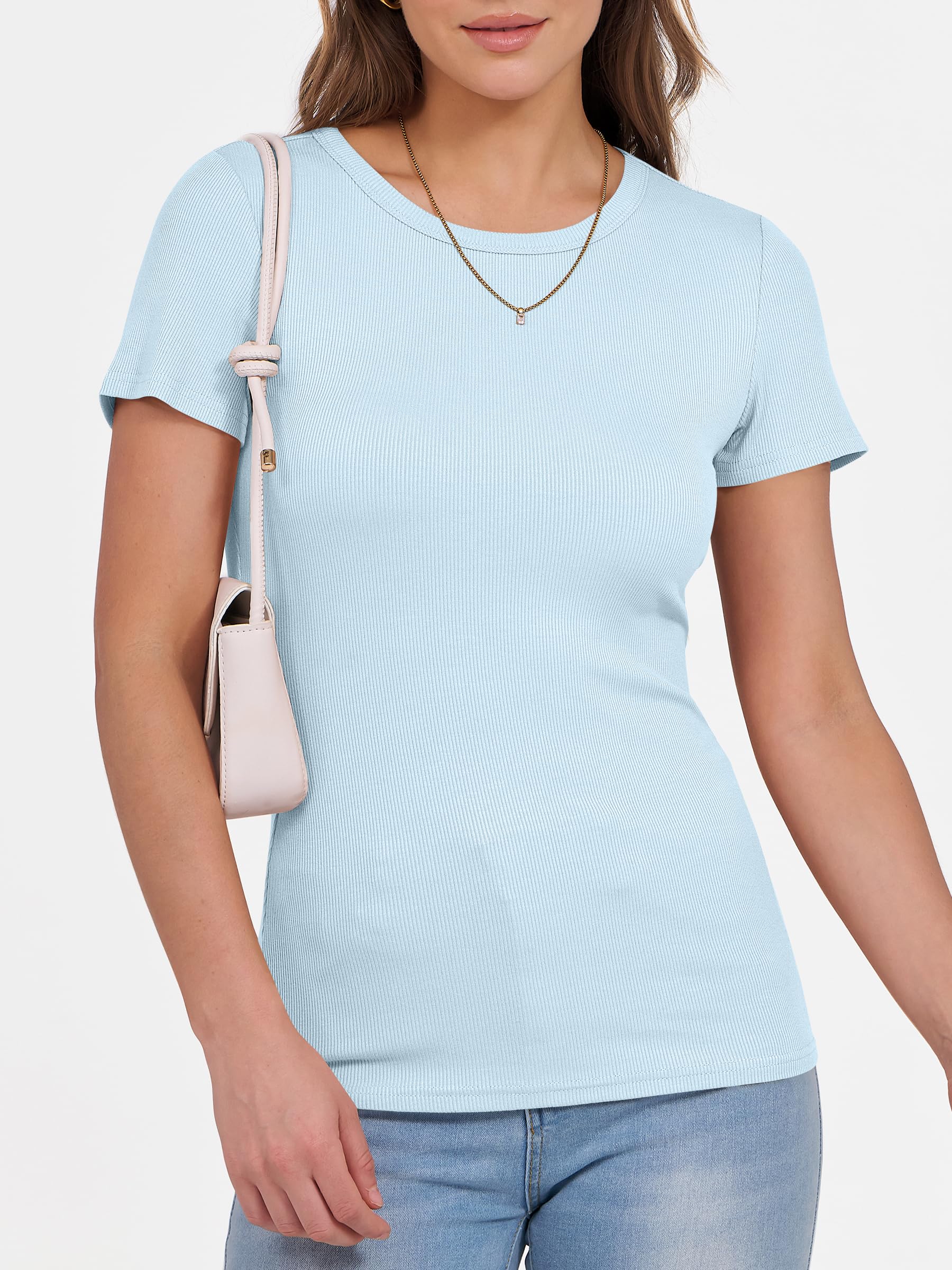 Features - Get summer-ready with our comfy and soft knitted fabric, perfect for all occasions. Our short sleeve crew neck design is versatile - wear it to school, the gym, the beach, or casual daily wear. The slim fit highlights your perfect figure, making you feel confident and stylish wherever you go. Comfortable, lightweight, and oh-so-flattering, our basic summer slim tee is an essential addition to your wardrobe.