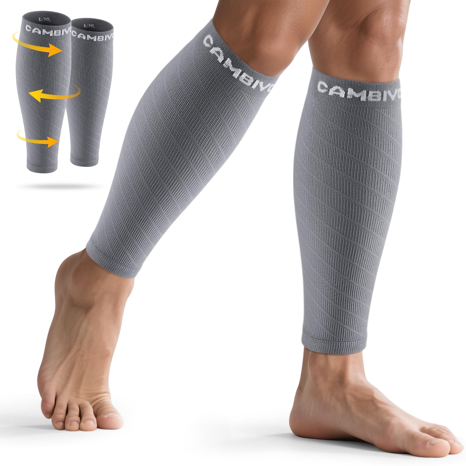 Breathable Fabric for All-Day Comfort - Utilizing 3D knitting technology, compression calf sleeve has excellent durability and breathability; moisture-wicking leg brace keeps your calves dry and eliminates annoying blisters and odor; double-layered cuffs ensure the sleeves stay in place as running accessories during activities; features a kinesiology strip design for added support