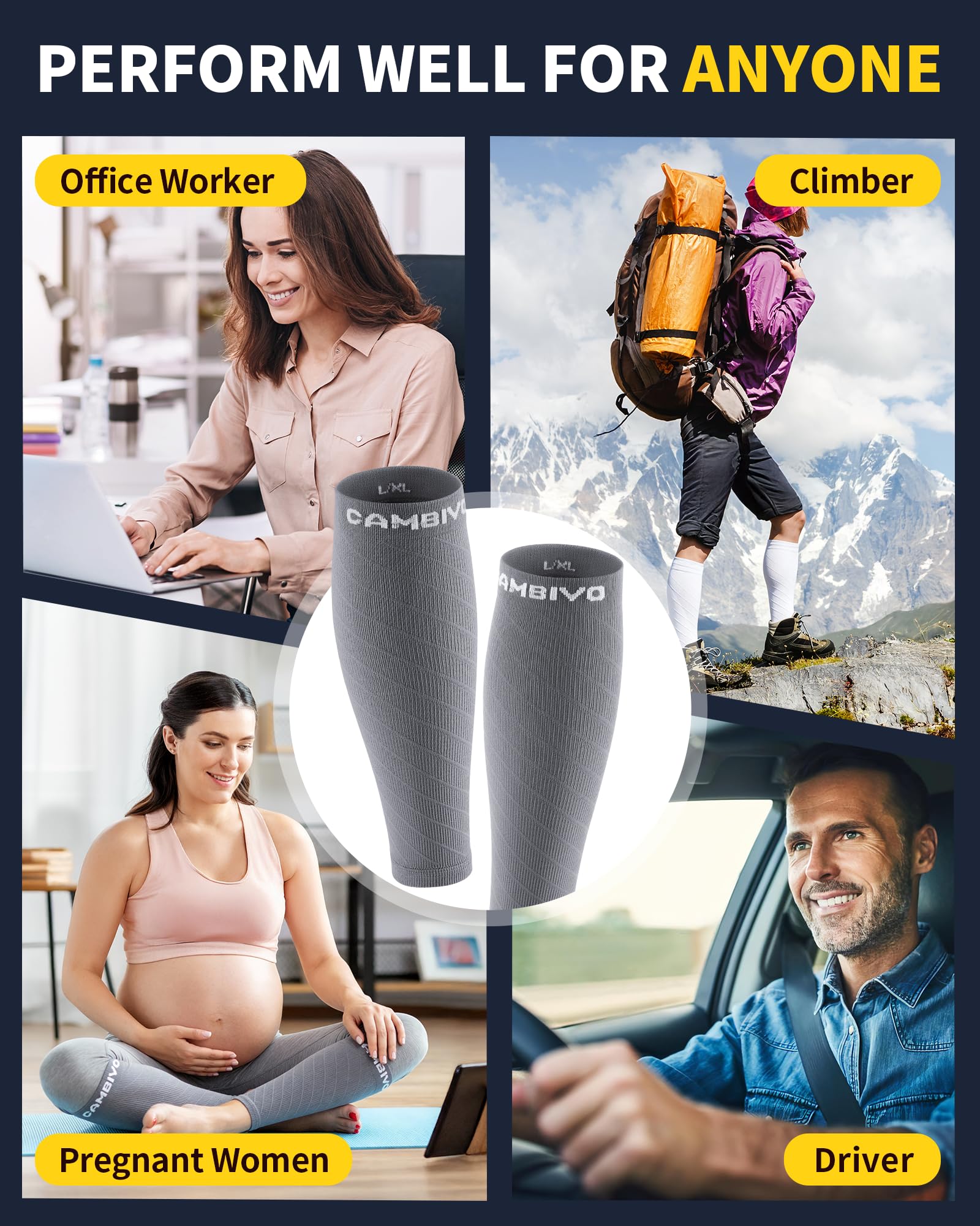 Varicose Veins Treatment for Legs - Leg compression sleeve promotes circulation by applying pressure on your lower legs and pushing blood back toward the heart; calf sleeves help reduce pain from swelling, varicose veins, and leg cramps; shin guard sleeves for shin splints relief; the compression socks without feet offer greater flexibility and versatility; easier to wear than full compression socks while allowing your toe and ankle to breathe and stay cool