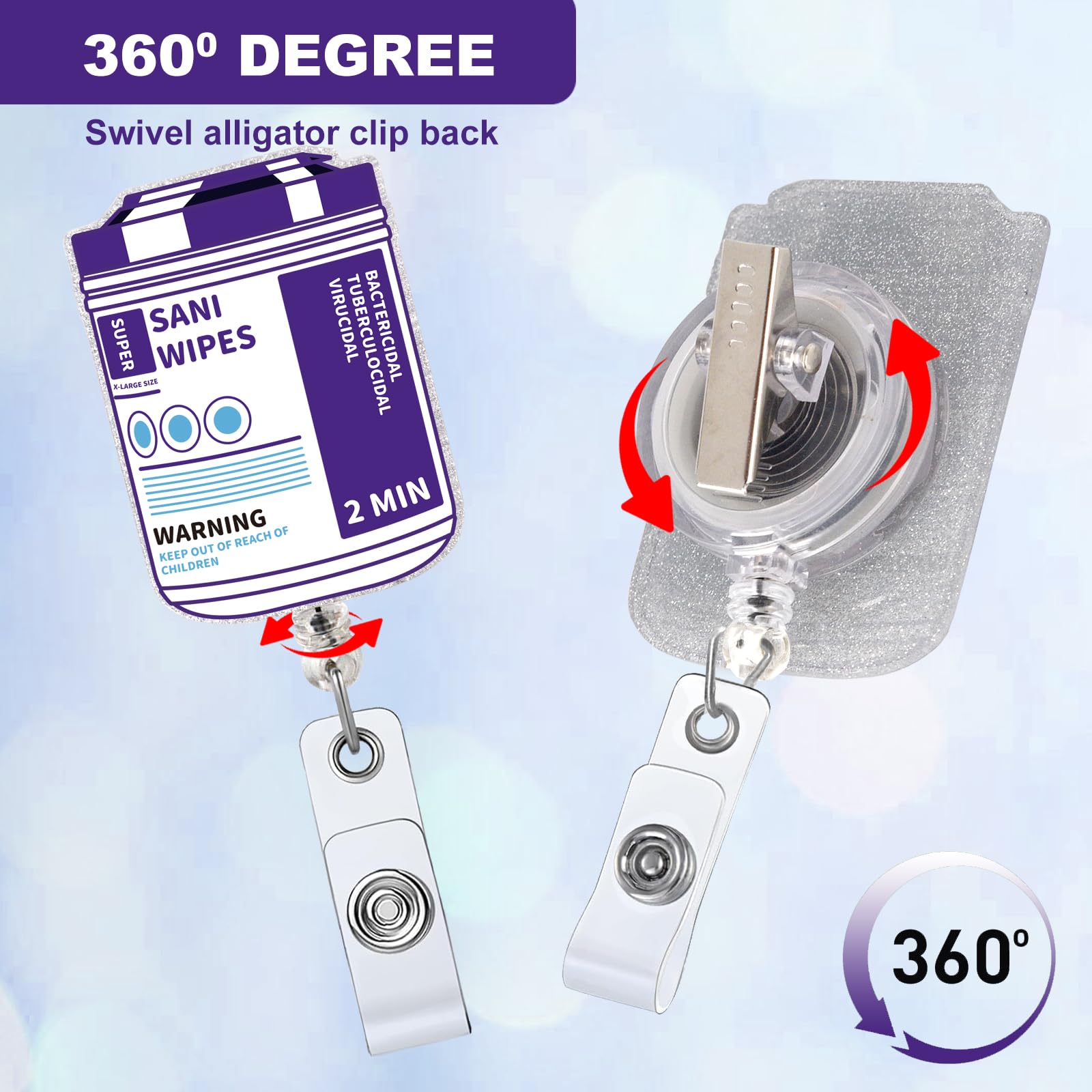 High Quality Materials: The Badge Holder Retractable Clip is made of shiny acrylic, which is not easy to wear or deform, exquisite, cute, and easy to carry, and can be used for a long time. Rotate the back of the crocodile clip 360 degrees to firmly grasp your clothes.